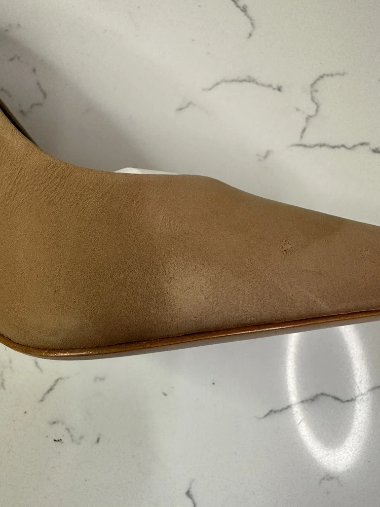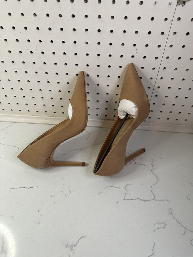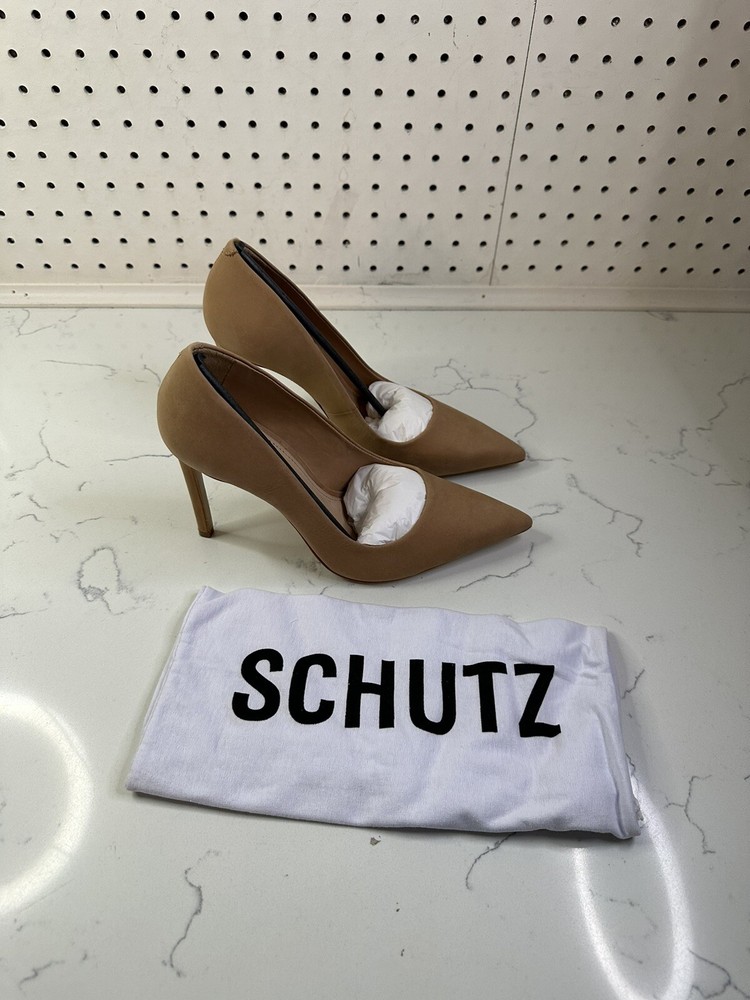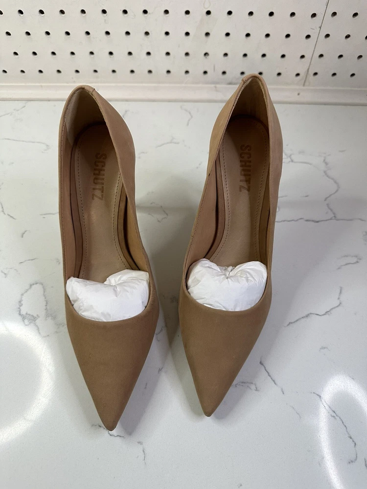 SCHUTZ Women's Lou Pointed Toe Pump Heels New with defects White Area noted on left foot Size: 7.5 B Inspected to the best of our abilities and looks to be in good condition. Elevate your style with these stunning SCHUTZ Women's Lou Pointed Toe Pump Heels in Honey Beige. With a sleek suede upper material, these pumps are perfect for adding a touch of elegance to any outfit. Designed with a pointed toe shape and a comfortable 7.5 US shoe size, they are perfect for any woman looking for a sophisticated and chic look. These heels are ideal for any occasion, whether it be a night out on the town or a formal event. The defects on these heels only add to the unique character of the shoes and do not affect their overall quality. Don't miss out on the opportunity to add these beautiful pumps to your wardrobe today!