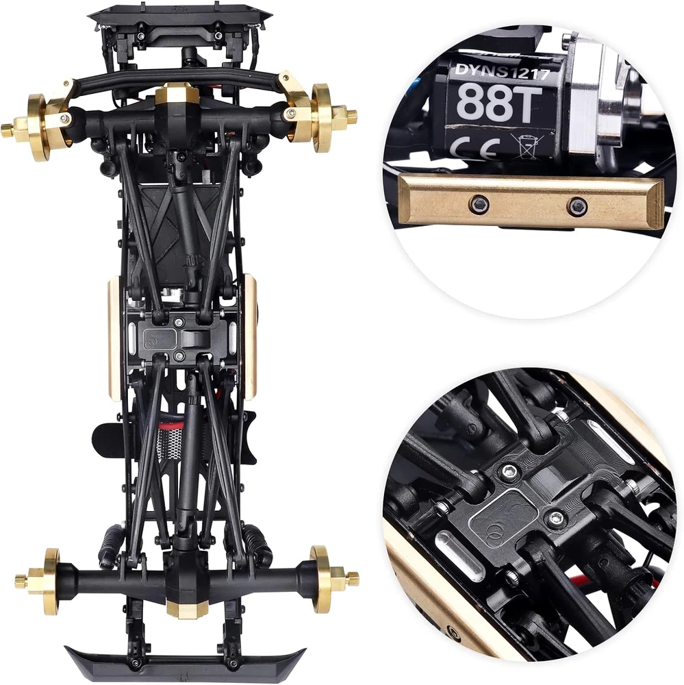 Compatible with Axial 1/24 SCX24 Crawler car Deadbolt AXI90081 C10 AXI00001 2019 Jeep Wrangler AXI00002 Jeep Gladiator AXI00005 2021 Ford Bronco AXI00006 B-17 CNC machined for precision. Easy to install. Ideal replacement of Original stock part The brass bar adds extra weight, Lower suspension gravity to keep crawling stable Package include: 1x skid plate, 2x brass bars Quality Products