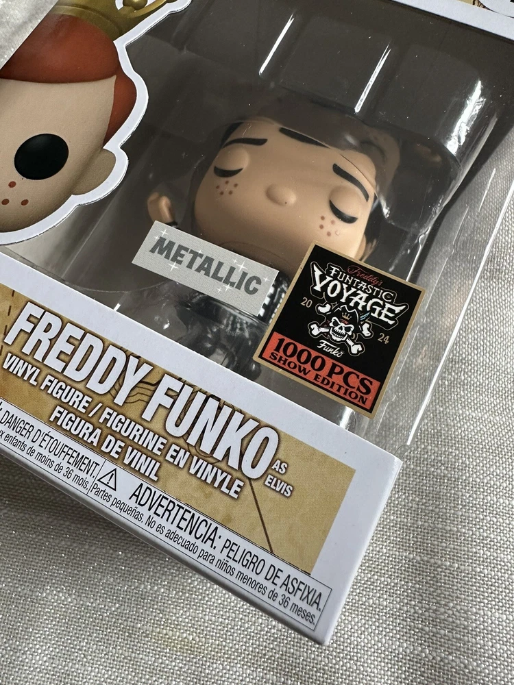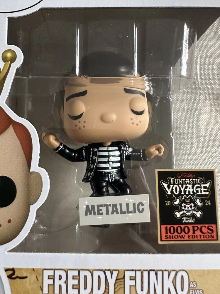 SDCC Comic Con Fundays Funtastic Freddy as Elvis Presley LE1000 Metallic Funko Please see pictures for detail. Damage to the lower left side of the box that you may not notice at first glance. Pop ships immediately in sort protector and carefully wrapped packaging Please message with any questions