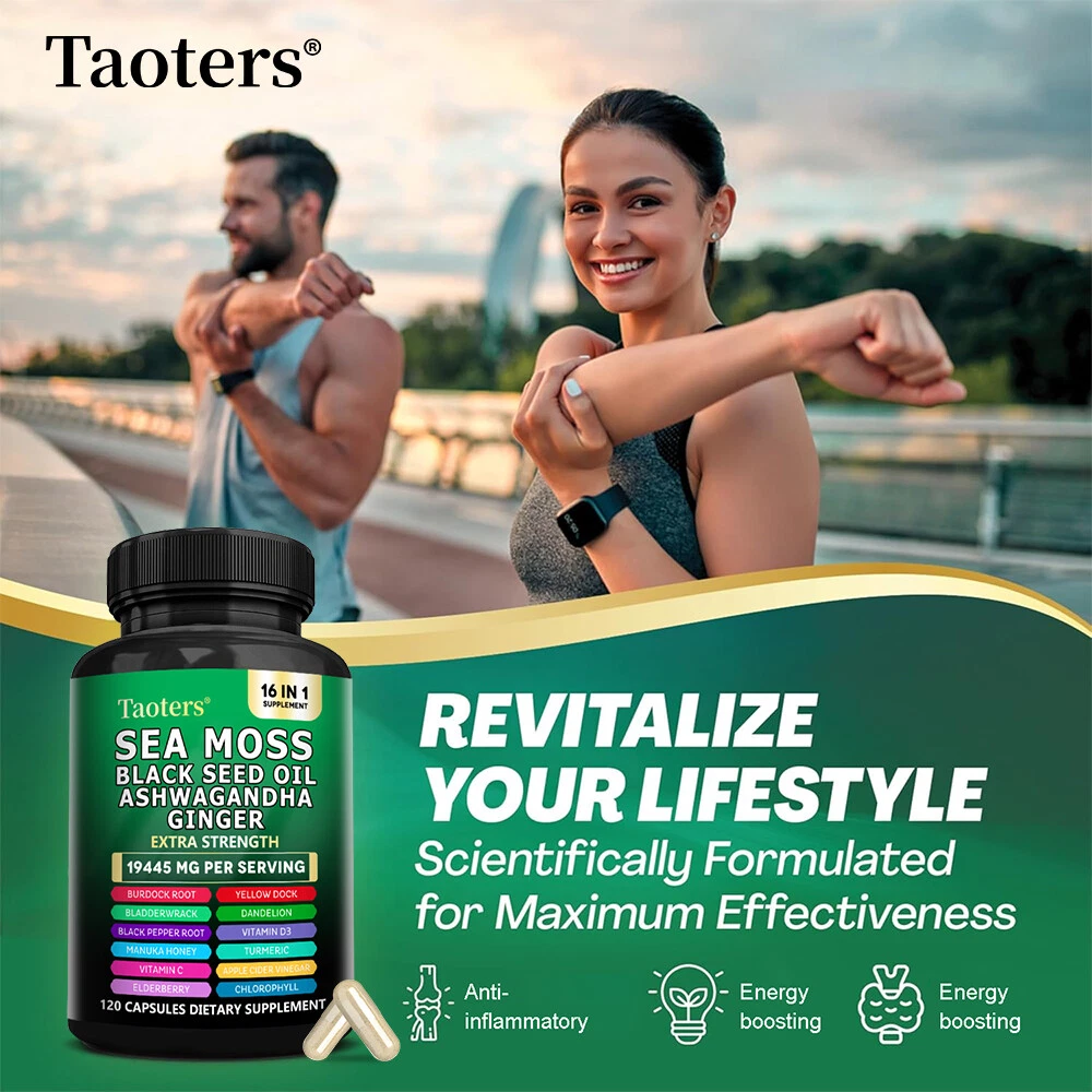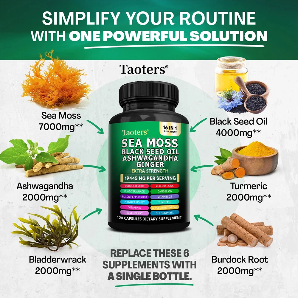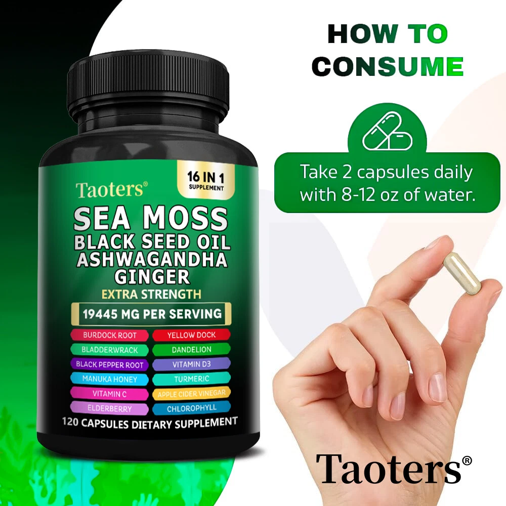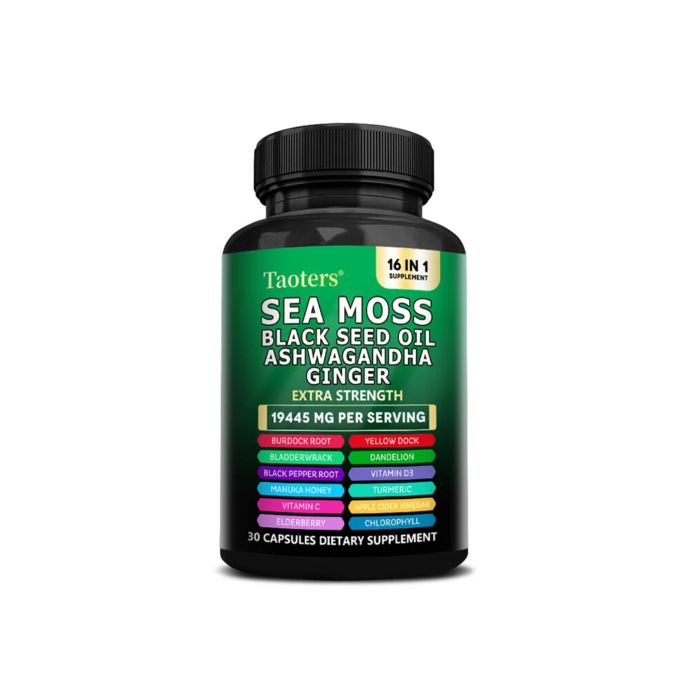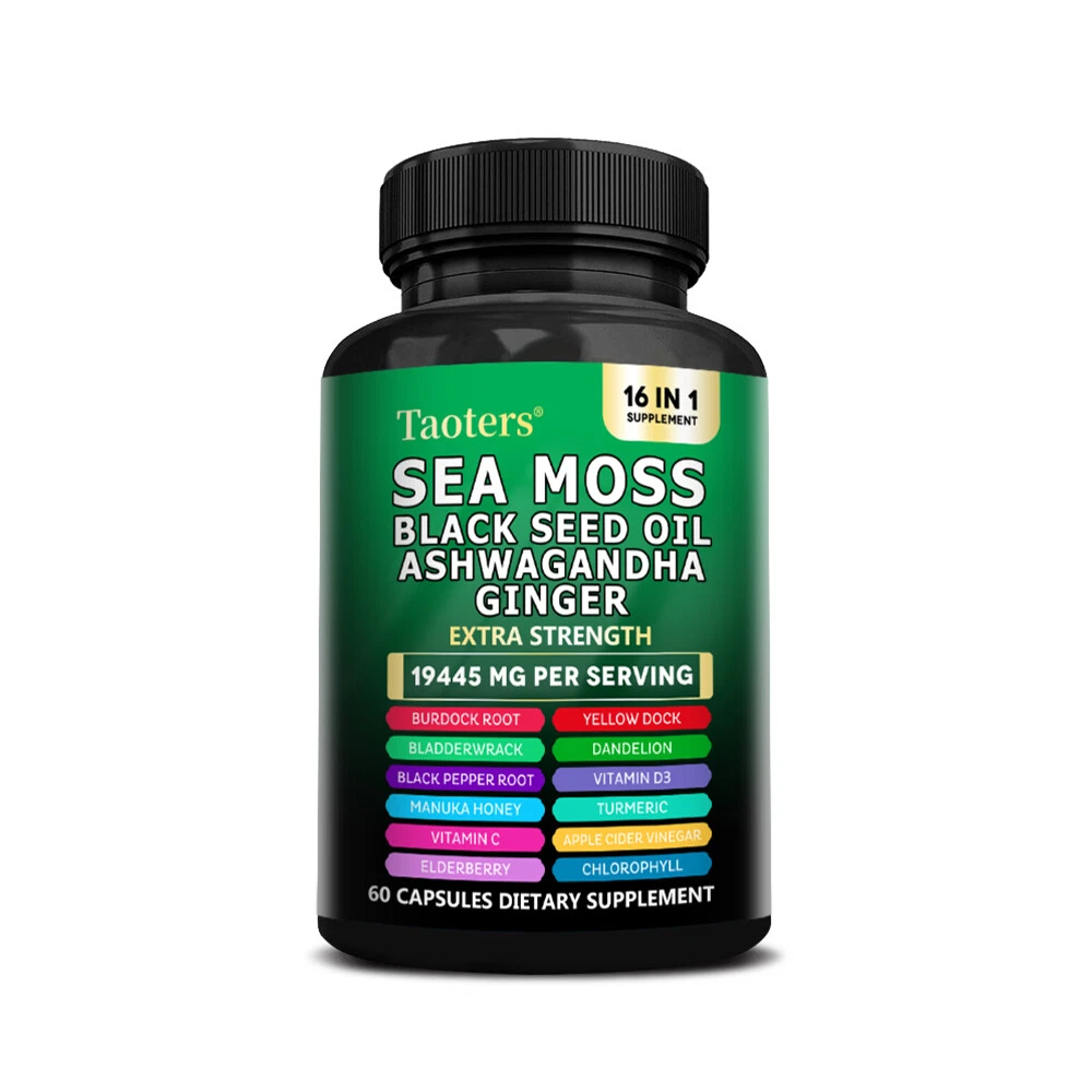 eBay Welcome to our store About the item Sea Moss Descript ion Taoters Sea Moss Capsules For Women and Men - Our Seamoss Capsules and Black Seed Oil for hair includes 16 ingredients such as Turmeric Curcumin Capsules, Bladderwrack capsules, Burdock roots, Chlorophyll and more! Sea Moss capsules with black seed have been combined and the results are amazing. The Raw Sea Moss and Black Seed Oil Capsules You’ve Been Looking For - Taoters provides 6 full-dose products in one, containing a full Irish Sea Moss Powder, Black Seed Powder, Ashwagandha Extract, Bladderwrack Powder, and Burdock Root Powder in a convenient all in one supplement! Finally, irish sea moss wildcrafted, black seed, ashwagandha powder, bladderwrack herb and burdock root Capsules have been packed into one convenient solution that's quick and easy to take. Introducing the MultiMineral Blend - Sea Moss Capsules, Black Seed Oil Capsules, Ashwagandha Root, Bladderwrack Capsules and Burdock Root Capsules that contain 10+ powerhouse ingredients, turmeric curcumin capsules, Apple Cider Vinegar, Chlorophyll, Manuka Honey, and more! These sea moss bladderwrack burdock root capsules are alternatives to sea moss gummies, black seed oil gummies, and ashwagandha gummies for men. Not usual sea moss raw organic, wildcrafted sea moss gel or ashwagandha supplements. A Powerful All In One Supplement - Taoters is overflowing with potent Sea Moss Supplement, Black Seed Oil capsules, Aswagandhada capsules, Burdock Root, Bladderwrack and turmeric powder. Clear out those countless supplements in your supplement cabinet, and replace it with just one seamoss powder, black seeds oil, aswagandhada capsules, and burdock supplement 16-in-1 formula from Taoters. We made Irish seamoss bladderwrack burdock capsules better by adding black seed. Vetted and Trusted Ingredients - We pride ourselves in offering quality seamoss raw, black seed oil health benefits, ashwagandha root, burdock root, and bladderwrack supplements for our customers. Our seamoss capsules, black seed cumin and ashwangha supplements formulas are proudly made to create trusted seamoss and bladderwrack capsules, black seed cumin oil, ashwagandha for men and bladderwrack supplement. How to take As a dietary supplement, take 2 capsules daily. Storage After opening, please seal and store in a cool place away from direct sunlight. suggestion Keep out of reach of children Fast Shipping Easy return Great support 100% Satisfaction Shipping Returns Payment Feedback Contact Us Shipping All the items will be dispatched within 2 business day after the payment is clear. We are not responsible for any custom duty or import tax. Returns 1. If you need return, please contact us with Email before open a case, let us know the detailed problem and send us some pictures for confirmation. 2. All returned items must be in the original packaging and provide us tracking number, specific reason for the returns. Payment eBay Accepts The Following Payment Methods: 1.Visa 2.Mastercard 3.PayPal 4.Apple Pay 5.Google Pay 6.American Express Card Feedback Customer satisfaction is very important to us. If you have any problem with your order,please contact us and we will do our best to make you satisfied, please do not leave a negative feedback before we resolve your problem. We guarantee that your issue will be solved quickly. As long as you are happy with your purchase of , please leave us a positive feedback. Your feedback is very important to us it affects our search placement on eBay. Contact Us If you have any queries, please contact us via ebay. We usually respond within 24 hours on weekdays. Document