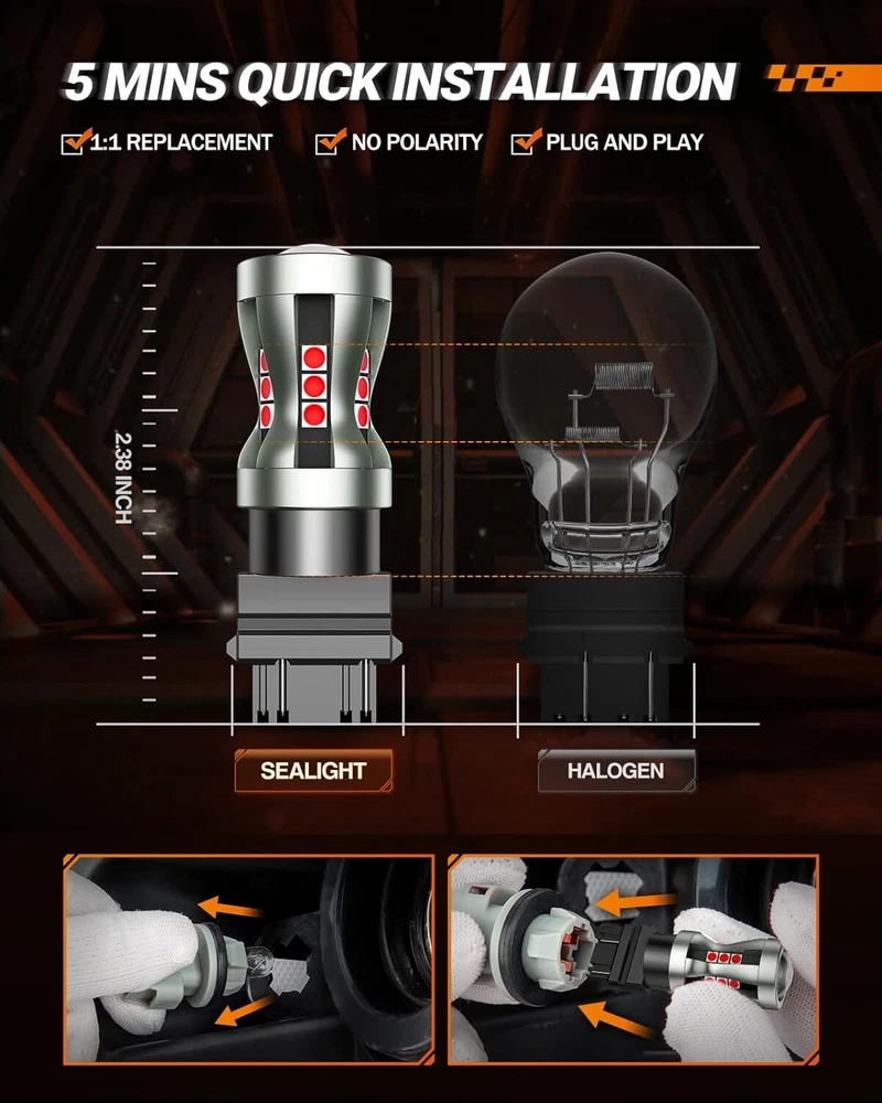 【1300% Brighter Than Halogen】 Sealight 3157 3156 LED brake light bulb uses 9W 2600LM (lab measured brightness) super bright chip, 360° omnidirectional lighting, increases brightness and visibility. The light has no black spots, no glare to other drivers, clear and safe. 【Wide Application】 Tail Lights Bulbs, Brake Lights, Red Stop Bulbs. Fits for 3156 3056 3356 3456 4156 3047 3157 3157A 3057 3155 3157NA 4157 etc 【Install In 5 Mins】 Non-Polarity, Plug-N-Play and the Same-Size with halogen design allow you can install T15 led back up light easy even if you have no experience before 【200% Faster Heat Dissipation】 Made of aircraft grade aluminum and great solid connection with the socket, which means the 3157 3156 led bulb will work just fine at least 10 years 【Attention】 The size of the bulb socket may vary depending on the vehicle trim. Please carefully check the owner's manual or the original bulb size before ordering. Please refer to the note on Amazon Fitment, which provides detailed adaptation models and applicable locations. The halogen bulb would be extremely hot after shutting down the engine. To avoid burns, please wait at 2 hours before replacing the lamps. Please remember to wear gloves for installation. That could avoid the lamp beads burn out for touching sweat. To avoid burns, please don't touch the bulbs for 15 mins after switching off the lights. After installing the bulb, check the lighting. Payment 1) we accepts all major credit cards via PayPal: MasterCard, Visa, American Express and Discover. 2) We will only ship to the confirmed PayPal shipping address given with the payment. Please make sure your PayPal and eBay address is correct. If not, please correct it before payment. Thank you. 3) If you want to ship to another address, please change your PayPal shipping address before you make payment. 4) To avoid initiating an unpaid item claim, please pay within 7 days. 5) Custom duties, taxes, or charges are not included in the cost you pay to us. Shipping We only ship this item to United States ! 1. We ship to your eBay address. Each package will be shipped by UPS or Fedex with tracking number. 2. Ship within 1 business day once payment completed. Orders placed on weekend will be shipped within 3 days. 4. Seriously promise: Refund or resend will be offered if item still not arrive in 7-10 business days. Just send us an email ,we will give you a satisfied solution as soon as possible. Return Policy If you send us an e-mail, it will be answered within 48 hours during our working hours. Please feel free to contact us if you have any questions: Dear my friend,we appreciate your support.And our goal is service you well and give you a pleasant shopping time in our store. ✅Dear customer, when you want to return or exchange goods (Please contact us first, instead of directly initiating a dispute) 1: Contact the seller first 2: Send pictures: outer packaging&scanned labels&item itself&with complete accessories, etc necessary condition Rule A: The original packaging of the item is in an unused state. Rule B: The outer packaging must not have any damage. 3: Obtain return label 4: Delivered Projects - Payment Repayment ✅A 15% restocking and shelving fee will be charged for returns or exchanges that are not caused by the seller and are in good condition. Exchange will not charge restocking fees or shipping fees due to transportation errors ✅Priority In case of the following reasons, the freight will be borne by the buyer 1: Unexpected order 2: Find a better price 3: Change your mind 4: Buy more items/make mistakes/misread model information ✅Please note Missing accessories/quality issues/transportation damage, etc Please contact us first to obtain a good solution, rather than directly opening a return dispute. Thank you very much for your understanding. I hope we have a pleasant cooperation! Contact Us Contact us if you have any question, Give us a chance to serve you, negative feedback could not solve anything, communication Please! ❎ (NO) Three stars is LOW star, NO 1,2,3 stars PLEASE! ✅(YES) Please give us Five-star! Have Question or Problem?? Step 1: Contact seller Step 2: Select the 1st topic: I have a question about using my item or I want to send the seller a message. NO others please! Step 3: Describe your question clearly; we will give you the best solution Please leave five stars positive feedback positive comment and Five-Stars. * We maintain a high standard of excellence (5 star rating) and strive for 100% customer satisfaction! * Feedback is very important to us. * We would like you to contact us immediately before giving us neutral or negative feedback so that we can address your concerns to our satisfaction. * If we don't understand these problems, we won't be able to solve them! * After understanding the problem, we will be able to give you a satisfactory answer! It's highly appreciated you leave us positive feedback and 5 star rating comments if you are satisfied with our service! Your comment is very important in our business success. About Warranty About Warranty ✅ Free repair: During the warranty period, if the product fails due to manufacturing defects, component failure or workmanship problems, please contact us to provide corresponding handling methods. ✅ Warranty period: The warranty period is usually calculated from the date of purchase, and the specific period may vary depend on the product type and brand. ✅ Extended warranty: Some manufacturers may provide additional extended warranty services, which usually require additional fees and may extend the original warranty period or provide a wider warranty coverage ✅ Warranty terms: The repairer needs to use components and spare parts that meet the technical requirements of the product, carefully record the failure and the quality of the product after repair, and ensure that the repaired product can be used normally for more than 30 days. ✅ Note: If there are any problems wi