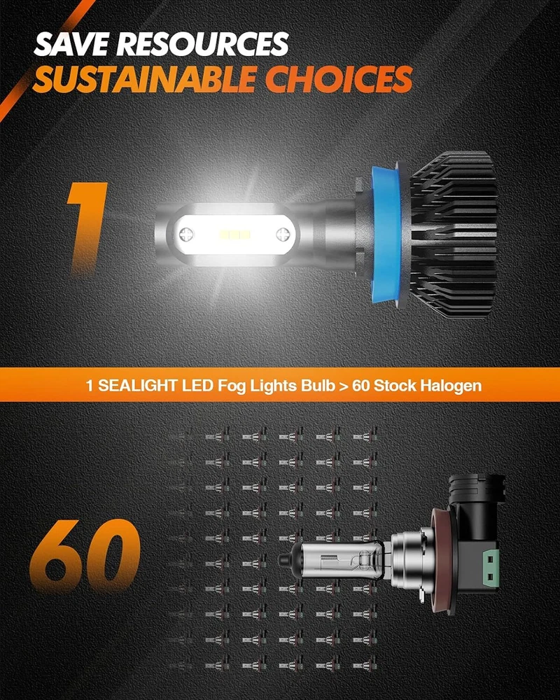 【F2 Series Advantage】400% Superior Brighter, 6000 Lumens/Set, 18w high-power chip.Ultra-focused beam provides over 300m range of illumination. Great upgrade over the stock bulbs, 6000K Xenon White brighter and whiter and give more visual distance 【Strong Penetrating Ability】Professional H11 LED bulbs have high light conversion rate and excellent light-gathering performance. Perfect mimic the halogen bulb design , with strong penetrating ability and high recognition. Street signs and paint lines can be clearly seen, even in bad weather 【10-Minutes Installation】Plug-and-play, no-polarity feature design, Compatible fitment size design, perfectly fit into your housing. No extra wiring or parts are needed, just a direct replacement of the factory halogen bulbs 【30000+ Hours Lifespan】With intelligent temp control and aviation aluminum heatsink, external power supply, 40% higher heat reduction, ensures maximum LED bulb life up to 20-year Life. Power consumption was reduced by 70%, reducing the need to replace the bulb 【Fit 98% Vehicles】No radio interference and Canbus ready. Fit to H11/H8/H9/H16 LED bulb and fog light. CANbus-Ready bulbs are designed by a professional r&d team for most models in the US, reducing the hassle of buying the wrong products. SEALIGHT F2 Series H11 LED Bulbs ( Pack of 2) Model H11/H16/H8 Position LED Bulbs, Fog Light or DRL Color Temp 6000K White Lumens 6000lm/set IP Rate IP67 Wattage 18W Lifespan 30000hrs Housing Material 6063 Aviation Aluminum Non-Polarity Yes Packaging 2 Pack Why Choose The SEALIGHT F2 Series LED Bulb? ✔ High Brightness: The F2 LED Bulbs are brighter than standard halogen bulb and features a superior beam pattern. ✔ 1:1 Identical Size: Perfect mimic the halogen bulb design makes installation easy. ✔ 3,0000Hrs Lifespan: The lightweight external driver provides constant current for stable and longer-lasting performance. ✔ EMC Anti-interference: Built-in smart IC driver, instant start, refuse to wait on rainy and foggy days, no flicker, no interference F2 H11 LED Bulbs are equipped with 6000lm/bulb high illumination and 18w/bulb high power 6 pieces advanced chips The full body of H11 LED Bulbs is equiped with aluminum material speeds up heat dissipation, making the lifespan more than 30000 hrs Using the most advanced packaging technology. IP67 waterproof rating ensures safe driving even in extreme weather conditions The power supply is separated with lights body, which will further accelerate heat dissipation. This design extends lifespan of lights SEALIGHT H11 LED Bulbs have a service life of 100 times that of halogen, and about 10 times that of HID IP67 high waterproof rating, with excellent visibility, it can clearly illuminate the road even in bad weather Customer Frequently Asked Questions Questions: Will these LED bulbs fit my vehicle? Answer: The Website Filter System may not be 100% accurate or up to date. Please check your owner’s manual or search the "automotive bulb finder" online to confirm the bulb size before purchasing. Questions: Will these LED bulbs can use as daytime running lights? Answer: Our bulbs can function as LED Bulbs, Fog Light or Day Running Light as long as the bulb size matches. Questions: How to install H11 LED Bulbs? Answer: Step 1 Take out the dust cover, pull the plug and take out the old bulbs Step 2 Position the 3 slots and turn clockwise for 45°to be in 3 and 9 o'clock position Step 3 Close the dust cover. The halogen bulb would be extremely hot after shutting down the engine. To avoid burns, please wait at 2 hours before replacing the lamps. Please remember to wear gloves for installation. That could avoid the lamp beads burn out for touching sweat. To avoid burns, please don't touch the bulbs for 15 mins after switching off the lights. After installing the bulb, check the lighting. Payment 1) we accepts all major credit cards via PayPal: MasterCard, Visa, American Express and Discover. 2) We will only ship to the confirmed PayPal shipping address given with the payment. Please make sure your PayPal and eBay address is correct. If not, please correct it before payment. Thank you. 3) If you want to ship to another address, please change your PayPal shipping address before you make payment. 4) To avoid initiating an unpaid item claim, please pay within 7 days. 5) Custom duties, taxes, or charges are not included in the cost you pay to us. Shipping We only ship this item to United States ! 1. We ship to your eBay address. Each package will be shipped by UPS or Fedex with tracking number. 2. Ship within 1 business day once payment completed. Orders placed on weekend will be shipped within 3 days. 4. Seriously promise: Refund or resend will be offered if item still not arrive in 7-10 business days. Just send us an email ,we will give you a satisfied solution as soon as possible. Return Policy If you send us an e-mail, it will be answered within 48 hours during our working hours. Please feel free to contact us if you have any questions: Dear my friend,we appreciate your support.And our goal is service you well and give you a pleasant shopping time in our store. ✅Dear customer, when you want to return or exchange goods (Please contact us first, instead of directly initiating a dispute) 1: Contact the seller first 2: Send pictures: outer packaging&scanned labels&item itself&with complete accessories, etc necessary condition Rule A: The original packaging of the item is in an unused state. Rule B: The outer packaging must not have any damage. 3: Obtain return label 4: Delivered Projects - Payment Repayment ✅A 15% restocking and shelving fee will be charged for returns or exchanges that are not caused by the seller and are in good condition. Exchange will not charge restocking fees or shipping fees due to transportation errors ✅Priority In case of the following reasons, the freight will be borne by the buyer 1: Unexpected order 2: Find a better price 3: Change your mind 4: Buy more items
