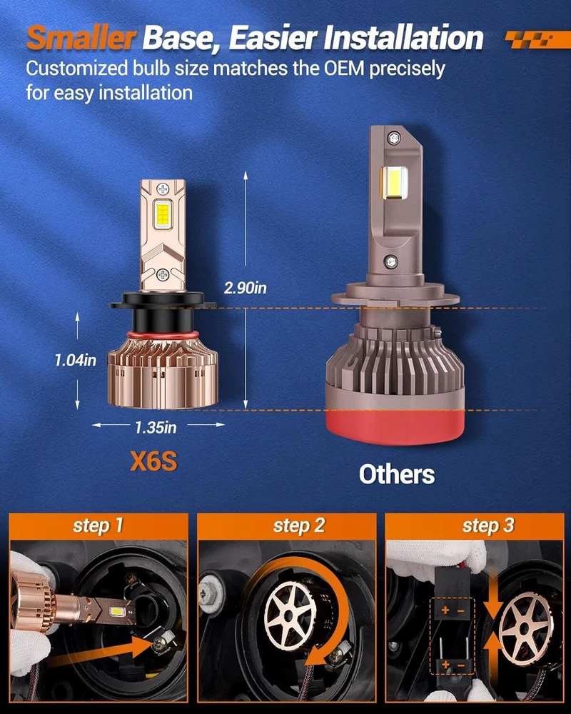800%+ Brightness, 2024 Huge Upgrade :Experience a breakthrough in brightness with the SEALIGHT X6S H7 Bulbs. Equipped with 16 upgraded CSP chips, these bulbs offer an astounding 800%+ increase in brightness compared to stock bulbs. Illuminate the road ahead with confidence and enjoy safer and more stylish journeys Enhance Your Nighttime Visibility : H7 hi/lo beam Bulbs with 120° Lighting Design, Say Goodbye to Black Spots and Glare, experiencing the more perfect beam pattern and crystal-clear visibility for safe night driving Advanced Cooling Technology : To tackle the challenge of heat dissipation, SEALIGHT has incorporated a high-efficiency cooling silent fan into the design of H7 light bulbs. Operating at a speed of 25,000 RPM, this fan enhances the cooling performance by 300%, preventing overheating and ensuring consistent brightness throughout the bulbs' lifespan 5 Min Quick and Easy Installation : Installing the H7 bulbs is a breeze. With a convenient plug and play design, you can upgrade your bulb in just 5 minutes. No complicated modifications required. Simply replace your old bulbs and enjoy the benefits of improved brightness and visibility 99% Vehicle Compatibility : The H7 bulbs adopt a built-in intelligent driver and CANbus ready design, ensuring compatibility with 99% of vehicle systems. SEALIGHT prioritize customer feeling above all else. If you encounter any issues after installing our bulbs, simply reach us with ebay Buyer Message to get help and solutions. SEALIGHT 2024 Newest X6S LED Bulbs Enhanced Brightness & Increased Safety How to Check the Correct Bulb Size for Your Vehicle? The halogen bulb would be extremely hot after shutting down the engine. To avoid burns, please wait at 2 hours before replacing the lamps. Please remember to wear gloves for installation. That could avoid the lamp beads burn out for touching sweat. To avoid burns, please don't touch the bulbs for 15 mins after switching off the lights. After installing the bulb, check the lighting. Payment 1) we accepts all major credit cards via PayPal: MasterCard, Visa, American Express and Discover. 2) We will only ship to the confirmed PayPal shipping address given with the payment. Please make sure your PayPal and eBay address is correct. If not, please correct it before payment. Thank you. 3) If you want to ship to another address, please change your PayPal shipping address before you make payment. 4) To avoid initiating an unpaid item claim, please pay within 7 days. 5) Custom duties, taxes, or charges are not included in the cost you pay to us. Shipping We only ship this item to United States ! 1. We ship to your eBay address. Each package will be shipped by UPS or Fedex with tracking number. 2. Ship within 1 business day once payment completed. Orders placed on weekend will be shipped within 3 days. 4. Seriously promise: Refund or resend will be offered if item still not arrive in 7-10 business days. Just send us an email ,we will give you a satisfied solution as soon as possible. Return Policy If you send us an e-mail, it will be answered within 48 hours during our working hours. Please feel free to contact us if you have any questions: Dear my friend,we appreciate your support.And our goal is service you well and give you a pleasant shopping time in our store. ✅Dear customer, when you want to return or exchange goods (Please contact us first, instead of directly initiating a dispute) 1: Contact the seller first 2: Send pictures: outer packaging&scanned labels&item itself&with complete accessories, etc necessary condition Rule A: The original packaging of the item is in an unused state. Rule B: The outer packaging must not have any damage. 3: Obtain return label 4: Delivered Projects - Payment Repayment ✅A 15% restocking and shelving fee will be charged for returns or exchanges that are not caused by the seller and are in good condition. Exchange will not charge restocking fees or shipping fees due to transportation errors ✅Priority In case of the following reasons, the freight will be borne by the buyer 1: Unexpected order 2: Find a better price 3: Change your mind 4: Buy more items/make mistakes/misread model information ✅Please note Missing accessories/quality issues/transportation damage, etc Please contact us first to obtain a good solution, rather than directly opening a return dispute. Thank you very much for your understanding. I hope we have a pleasant cooperation! Contact Us Contact us if you have any question, Give us a chance to serve you, negative feedback could not solve anything, communication Please! ❎ (NO) Three stars is LOW star, NO 1,2,3 stars PLEASE! ✅(YES) Please give us Five-star! Have Question or Problem?? Step 1: Contact seller Step 2: Select the 1st topic: I have a question about using my item or I want to send the seller a message. NO others please! Step 3: Describe your question clearly; we will give you the best solution Please leave five stars positive feedback positive comment and Five-Stars. * We maintain a high standard of excellence (5 star rating) and strive for 100% customer satisfaction! * Feedback is very important to us. * We would like you to contact us immediately before giving us neutral or negative feedback so that we can address your concerns to our satisfaction. * If we don't understand these problems, we won't be able to solve them! * After understanding the problem, we will be able to give you a satisfactory answer! It's highly appreciated you leave us positive feedback and 5 star rating comments if you are satisfied with our service! Your comment is very important in our business success. About Warranty About Warranty ✅ Free repair: During the warranty period, if the product fails due to manufacturing defects, component failure or workmanship problems, please contact us to provide corresponding handling methods. ✅ Warranty period: The warranty period is usually calculated from the date of purchase, and the specific period may vary depend