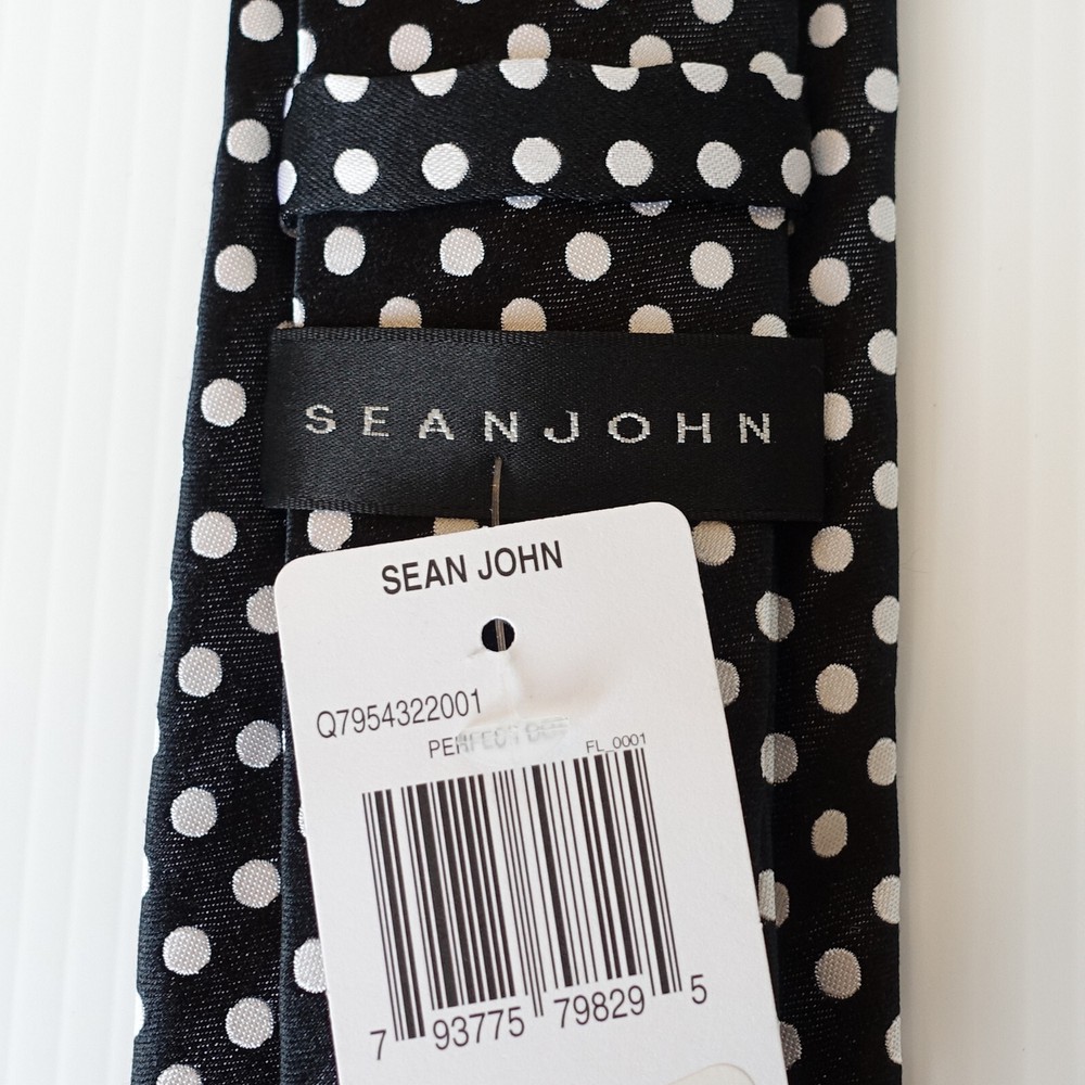 SEAN JOHN Black White Perfect Polka Dot Silk Twill Classic Tie Classic designs join forces when you treat your button-down look to this timeless tie. Brand: Sean John Material: 100 % Silk Cleaning: Dry Clean Color: Black/White Width: 3 1/8" Condition: NWT - New with tag All items come from a non-smoking home.