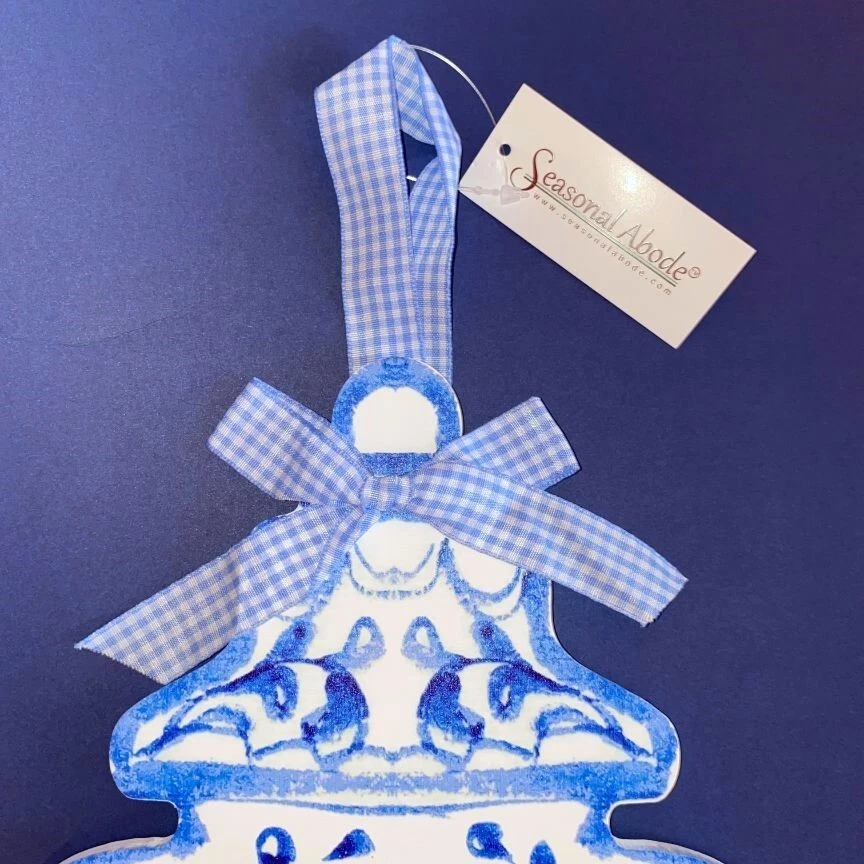 Character Family: Ginger Jar Type: Ornament Size: Large Occasion: Christmas Features: Hanging Theme: Chinoiserie Brand: Seasonal Abode Shape: Ginger Jar Color: Blue Item Length: 11 in Pattern: Chinoiserie Number of Items: 1 Material: Wood