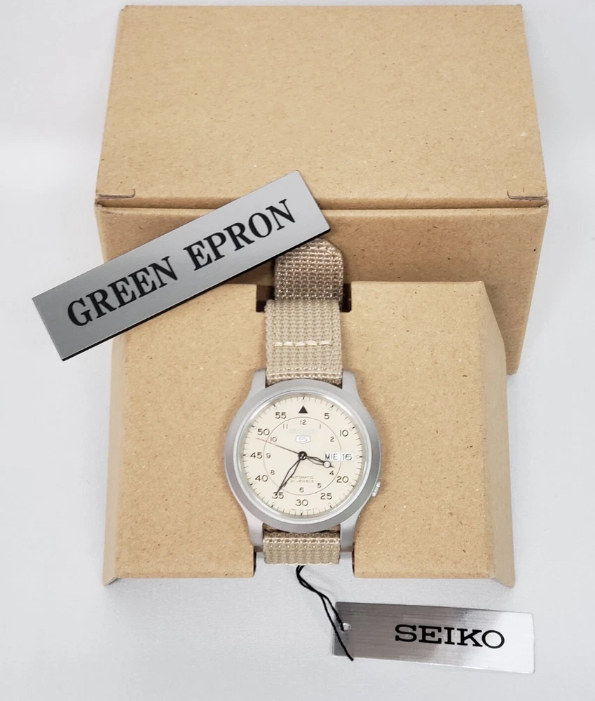 Description All my products are 100% Authentic. Please feel free to contact us if you have any question. Brand: SEIKO Model number: SNK803K2 Display type: Analog Case diameter/width: 37 millimeters Case thickness: 11 millimeters Band material/type: Nylon Band color: Beige Other features: Glow in the dark Movement: Automatic Payment We usually ship within 5〜10 business days of receiving cleared payment. Shipping We ship using FedEx, DHL and Japan Post. International Buyers - Please Note: Import duties, taxes and charges are not included in the item price or shipping charges.These charges are the buyer’s responsibility.Please check with your country’s customs office to determine what these additional costs will be prior to bidding/buying. These charges are normally collected by the delivering freight (shipping) company or when you pick the item up do not confuse them for additional shipping charges. I do not mark merchandise values below value or mark items as "gifts" - US and International government regulations prohibit such behavior.