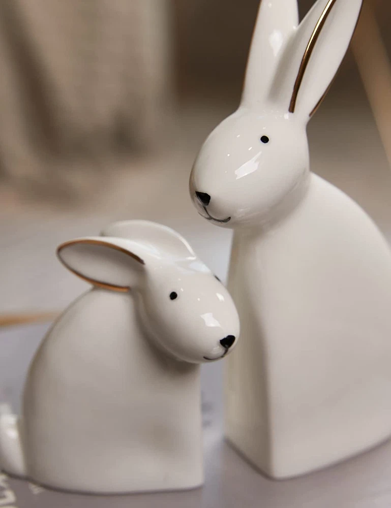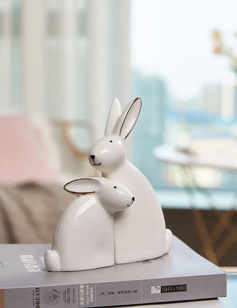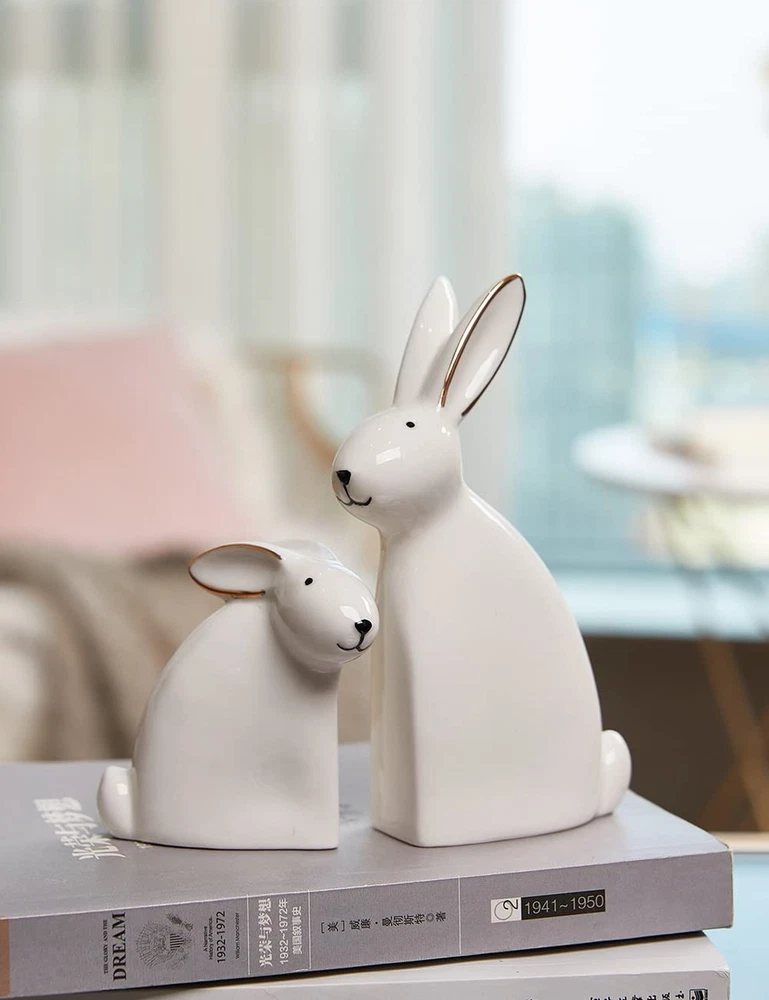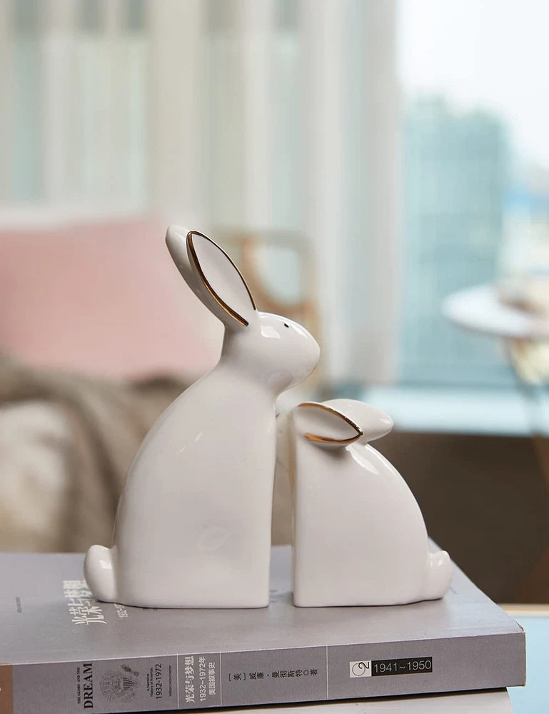 SEINHIJO 2pcs Rabbit Sculpture Statue Bunny Decor Animal Figurine Home Gifts Ceramic 5.9inch Product Details Product Dimensions: 5.51 x 2.36 x 5.91 inches Item Weight: 10.6 ounces Manufacturer: SEINHIJO Country of Origin: China Item model number: SH080468 Specific instructions for use: Indoor Maximum recommended load: 0.3 Kilograms Finish types: Glazed Care instructions: Light Dusting Assembly required: No Number of pieces: 2 Batteries required: No 2PCS RABBIT CRAFT The rabbit statue is perfect for home or office decoration. Put them in your room and decorate your room, like desk, table, bookcase, shelf, dining table, bedside. Let your home(room) have one more scenic spot. IDEAL SIZE- 5.5 x 2.4 x 5.9 inches Weight:0.7 Lbs DURABLE MATERIAL- Constructed from durable finest ceramic with glazed finish to ensure it will be long-lasting.To clean, dust with soft brush or cloth. GREAT GIFTS-It's a perfect present for your families, kids, lover and friends,it makes great Birthday Anniversary Housewarming Thanksgiving or Christmas gifts and more! SECURE PACKAGE- Each products is packaged securely in Styrofoam to ensure a safe delivery and to avoid breakage in transit.