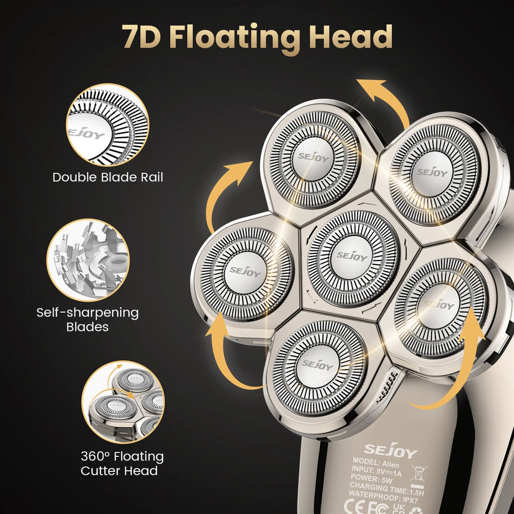 SEJOY Wet & Dry Electric Shaver 5IN1 Bald Head Shaver Beard Trimmer Hair Clipper