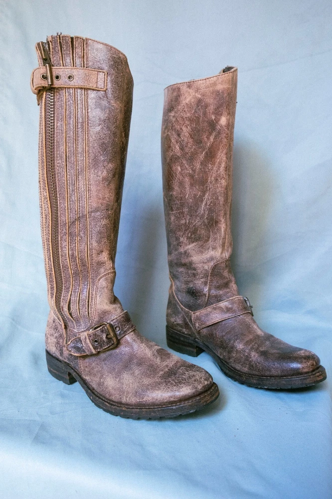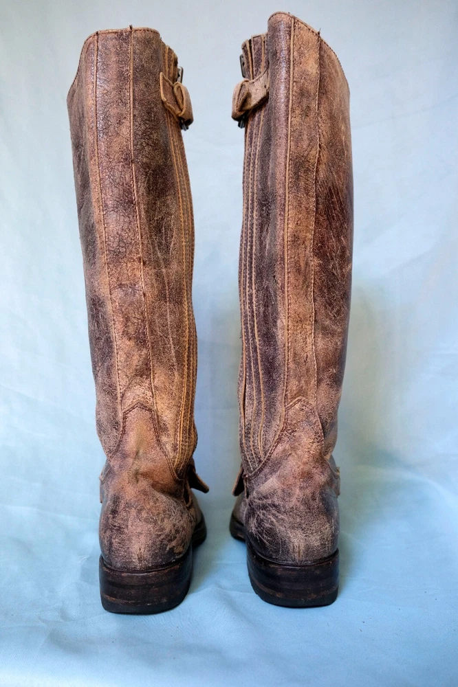 SENDRA Women's Riding Boot Size 6.5 tall distress Crackle Finish Leather Tan