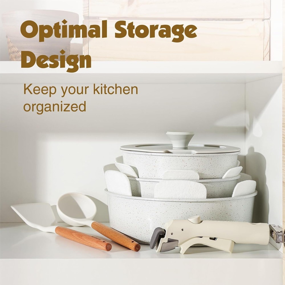 Absolutely love this sleek granite white set! The nonstick coating works like a dream, and cleanup is effortless—dishwasher safe is a huge plus. Perfect for gas and induction, plus oven-safe versatility. Comes with handy extras like removable handles and pot protectors. Great value for 17 high-quality pieces that look gorgeous on any stove!