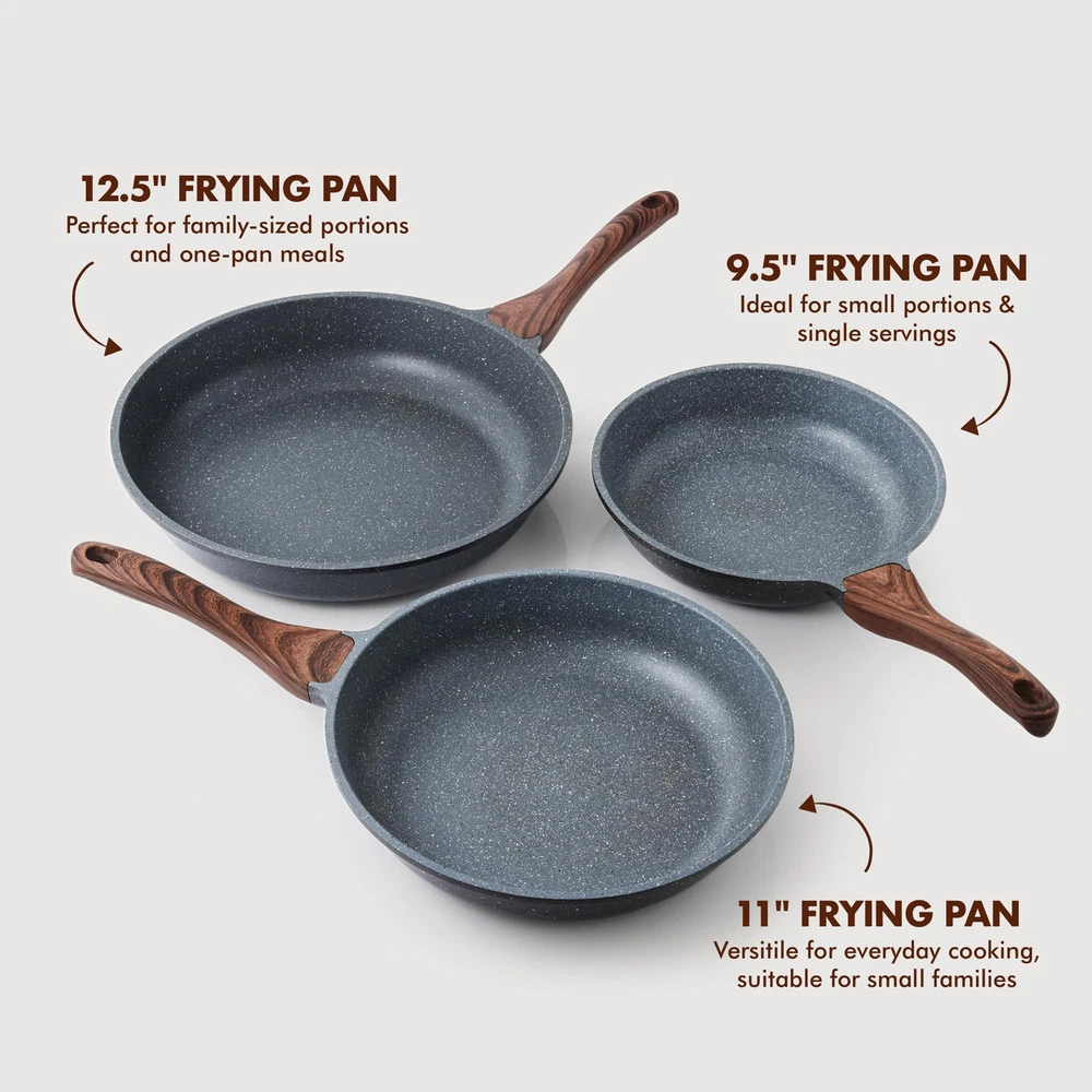 SWISS NON-STICK COATING - Switzerland ILAG nonstick coating, SGS approved. PFOA free,safe and healthy. WOODGRAIN BAKELITE HANDLE - The bakelite handle features woodgrain design, it is comfortable to grip and stays cool while cooking. Oven safe to 302°F. HIGH MAGNETIC CONDUCTIVE BASE - High magnetic conductive stainless steel base. The nonstick skillet bottom is flat and thick, which helps distribute heat evenly and quickly. Suitable for all stove, including induction cooktop. STURDY BODY - The non sticking omelet pan inside is made of cast aluminum, which is more sturdy and long-lasting. SENSARTE non-stick frying pan is passed international certification. EASY TO CLEAN - Super easy to clean up, just wipe it with a paper towel or rinse it with water. Dishwasher safe.