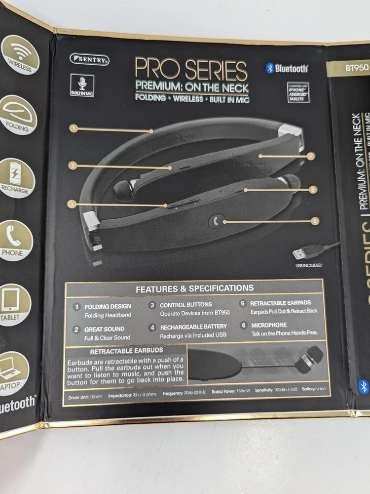 Year Manufactured:2010sCountry/Region of Manufacture:ChinaBrand:SentryColor:BlackMPN:BT950Wireless Technology:BluetoothFeatures:Built-in Microphone, Foldable, WirelessModel:BT950Connectivity:BluetoothMicrophone Type:Built-InUPC:080068549505Type:Earbud (In Ear)Number of Earpieces:DoubleSuitable For:ListeningForm Factor:Neckbandgtin13:080068549505