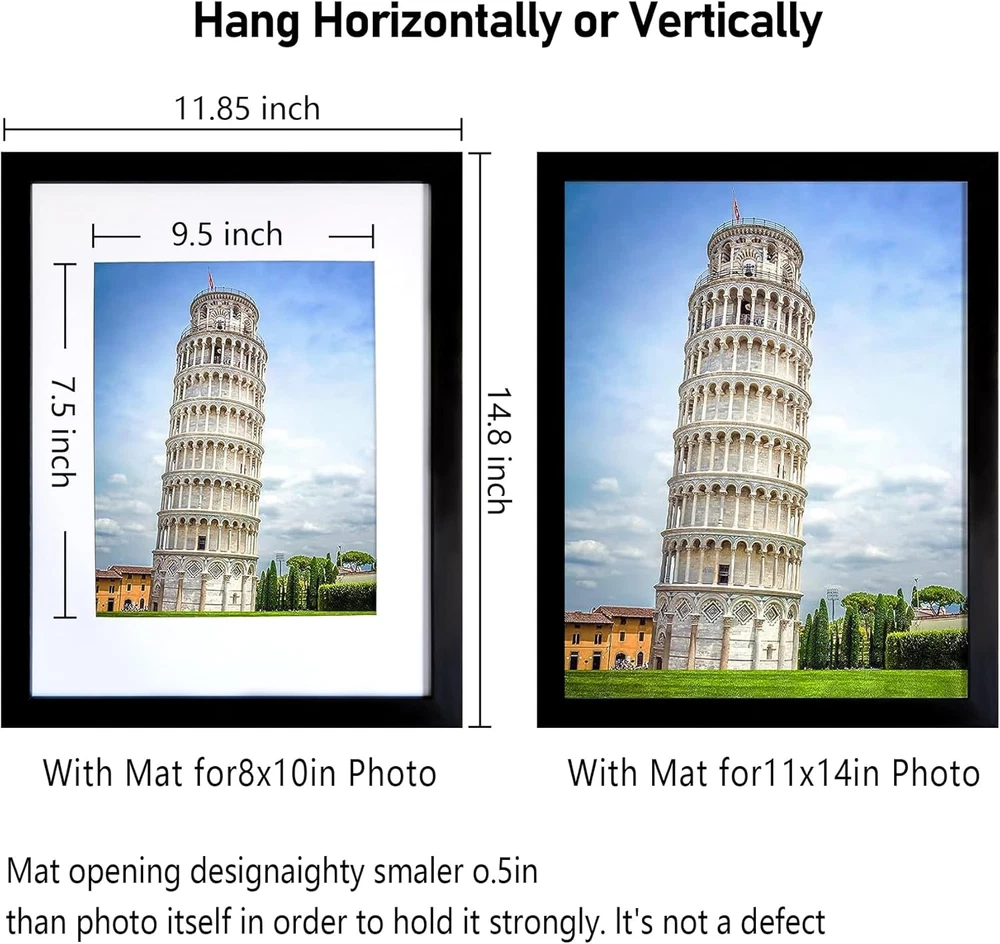 Store New Arrivals Add to Favorite View Feedback Contact SESEAT 11X14 Picture Frame Set of 10, Display Pictures 8X10 with Mat or 11X14 Prints without Mat, Wall Mounting,Black Description Style Rustic Capacity 11.3 Pounds Number of Items 10 Theme Space Unit Count 10.0 Count Batteries required No Special Feature Matted Brand SESEAT Frame Material Engineered Wood Finish Type Polished Frame Type Gallery Wall Frame Item Weight 1 pounds Occasion Mother's Day, Christmas, Anniversary, Birthday, Thanksgiving Target Audience Unisex Adult Orientation Vertical, Horizontal Mounting Type Wall Mount Color Black Cover Material Plexiglass Shape Rectangular Back Material Type Medium Density Fiberboard Finish types Polished Manufacturer SESEAT Product Dimensions 15.57"L x 12.57"W Size 11x14 Multi frames: Simple, decent black 11 x 14 frame for wall mounting, set of 10. HD Plexiglass protected, It’s the perfect thickness to offer protection to protect treasured photos, prints and artwork! Great use: These picture frames 11x14 are suitable for display family photos, landscape pictures, prints, artworks etc. Size: This 11x14 picture frame is designed to display 8x10in picture with mat or 11x14in without mat. (Excluding accessories) Easy to use: Each 11x14 frame is made of high quality MDF with black texture veneer finish, really beautiful frames on the wall horizontally or vertically. Well Packaged: These frames 11x14 are carefully packaged that you do not need to worry about receiving broken frames, safety plexiglass protected instead of glass, safer for you(Note: Please Make Sure Tear Off Both Side Film On The Font Of Transparent Protective Sheet.) Product Description 11x14 Picture Frame Set of 10, Wall Gallery or Tabletop Display Photo Frames, Black Simply and easily upgrade your home or office space with these 11x14 Black picture frames Mount Type:Wall hanging Frame Material:MDF Orientation:Horizontal & Vertical Mat Included:Yes Photo Protector Material: HD Prexiglass Color: Black Size: Diplaying 8x10 photos with mat or 11x14 without mat 11x14 Picture Frame Black Fits 11 by 14 Inch Prints Wall Gallery Display This set of 10 11x14 picture frames will complement your home in a sleek and eye-catching way It's simple and chic and really goes well with the 11x14 prints The picture frames are made of MDF wood, come with high definition Prexiglass to protect your picture. Beautiful 11x14 frames to display your framliy photos, pencil drawings, artful prints and travel photos, really enhances the images ABOUT US We offer the best prices around on high quality products. Our E-store includes media such as books, movies, music and games while offering electronics, toys, sporting apparel, clothing, tools, general home, garden items and more. SHIPPING We are always working hard to ensure your package arrives as soon as possible. Please understand that some factors like weather, high postal traffic, and the performance of shipping companies are outside of our control. We offer free shipping to the lower 48 states and ship within 2 business days of payment, usually sooner. We do not accept P.O. Boxes. Please provide a physical address. RETURNS We offer a 30-Day Return Policy on items which you are not completely satisfied with. You have the option for a full-refund or an exchange of the item. No returns are available on items shipped outside of the USA. PAYMENT We accept PayPal. CONTACT US This page content is yet to come Please ad us to your favorite seller and visit again later Thank You CUSTOMER SATISFACTION We try our very best to make sure every customer is completely satisfied. If there's a problem, message us! We're happy to help.