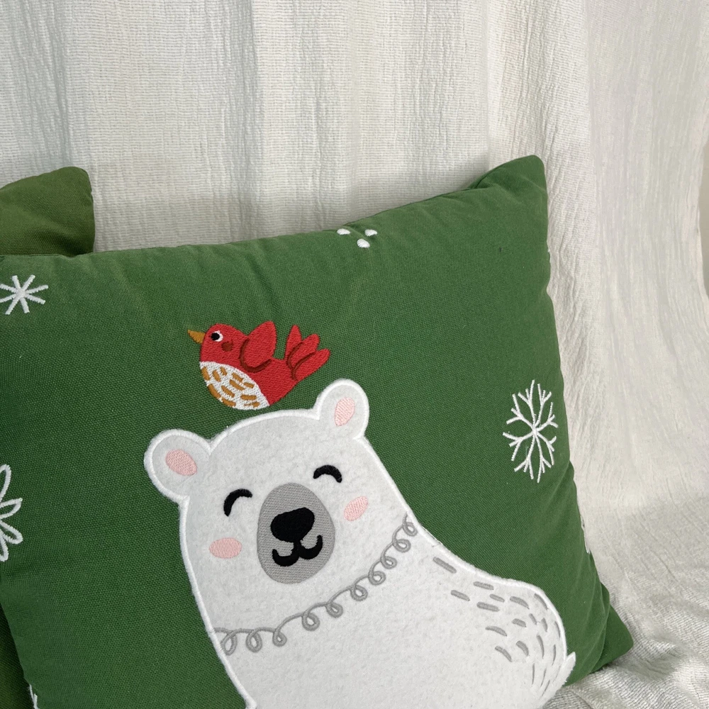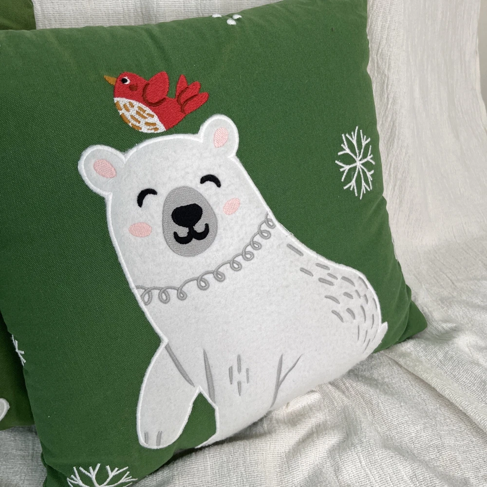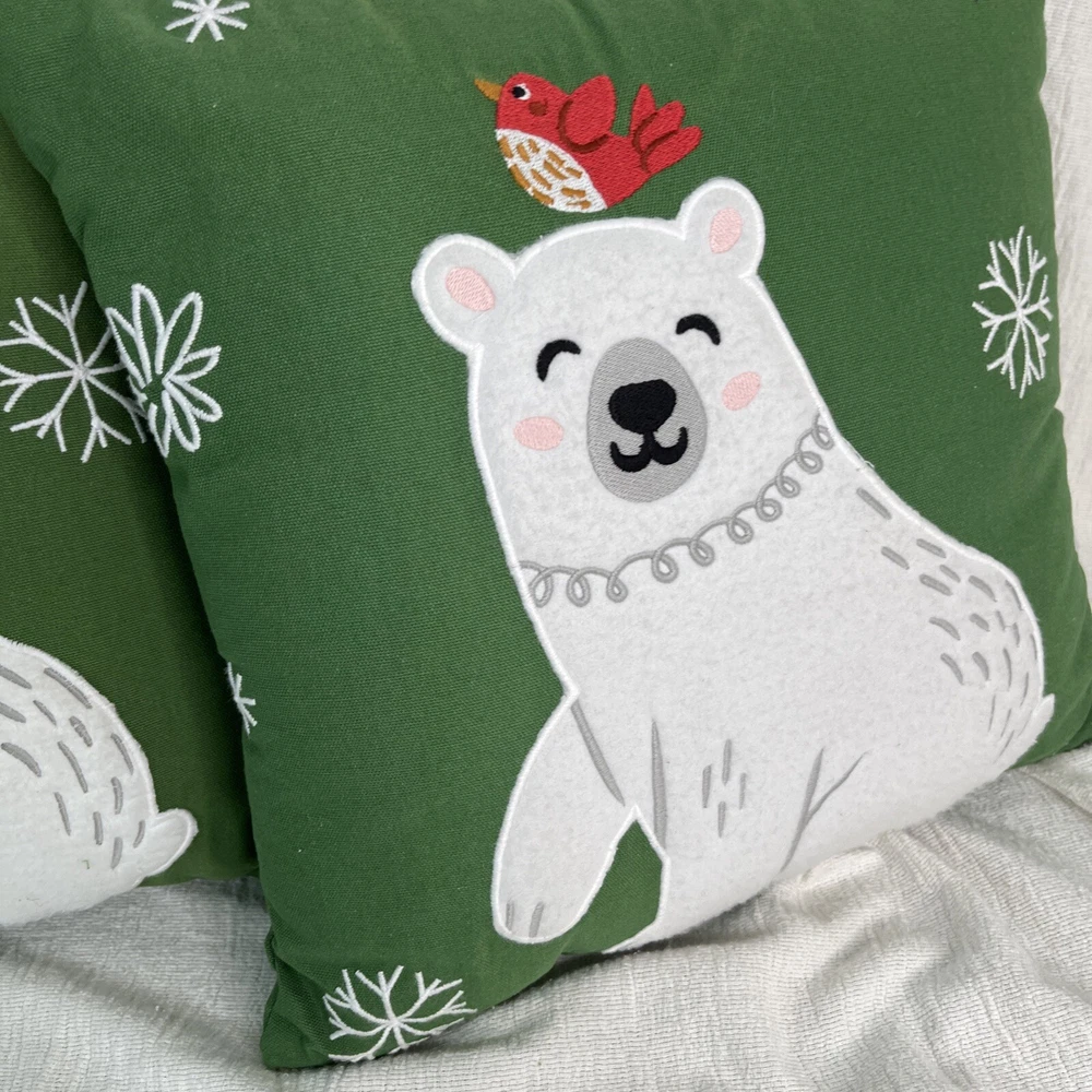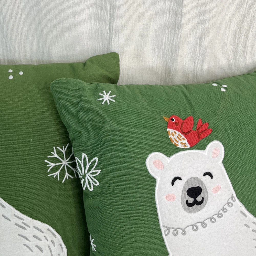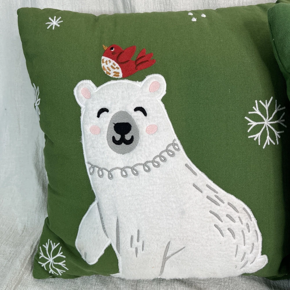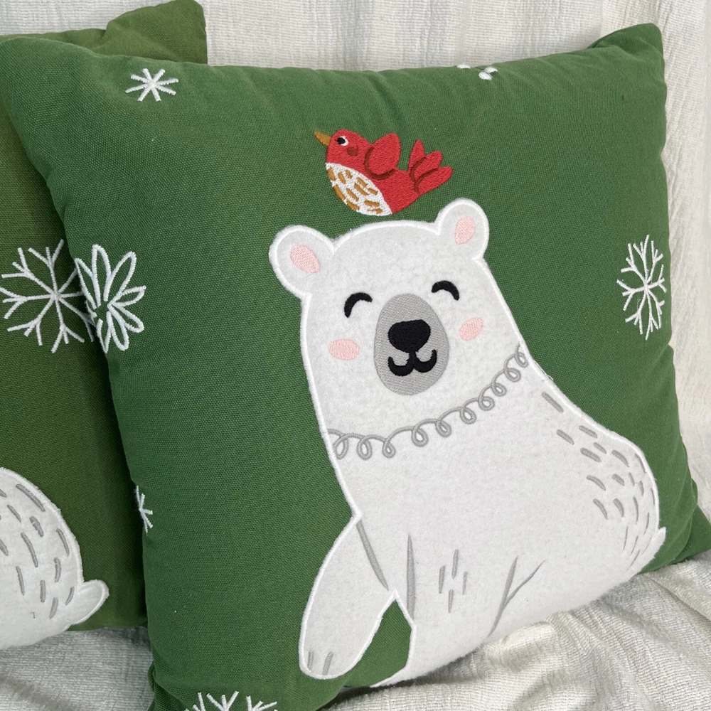 SET OF 2 Polar Bear Cardinal Christmas Accent Pillow 14” Holiday Snow Winter. Condition is Used. Shipped with USPS Ground Advantage.