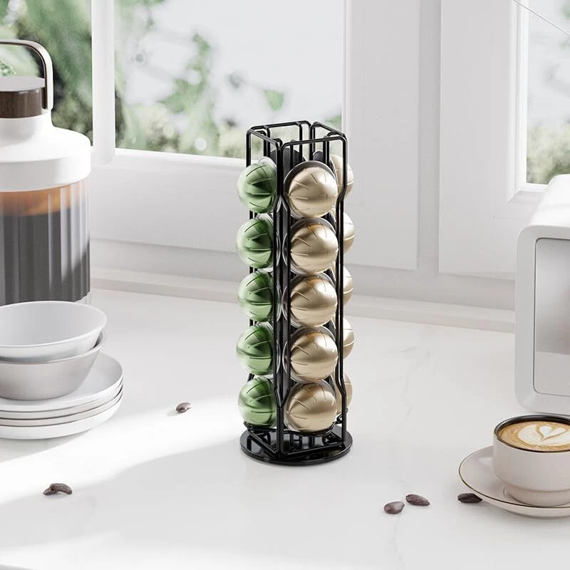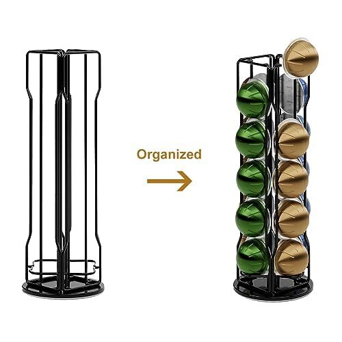 SEVENLINE 20 Vertuo Pods Coffee Pod Holder Compatible For Nespresso Vertuoline Stand Rack Holds Vertuo line Organizer Carousel 360-Degree Rotatable (Black) HIGH QUALITY Material Features -Metal Vertuoline pods holder was made of premium quality metal, Coated metal construction with Rubber Feet to Prevent Slippage. Turntable is designed on the holder bottom. It wouldn't make any noise when rotating. All our Pod Holders, are designed and tested using the highest quality materials and production standards. If you're not satisfied with your purchase, reach out to our team and we'll make it right. EASY TO USE The carousel spins smoothly and silently in a 360-degree motion allows access Both the TOP and BUTTOM can be taken.No assembly required.When you take a coffee capsule out, the rest will fall down automatically. You don't need to organize it again. Besides, within the track design,Vertuoline coffee pods can't fall outside the holder. CONVENIENT Save Space 4 Columns, Holds Up to 20 Pods. There are four colors of this pods storage. Offers more choice for differnt design's kitchen or office. Save your presious time in the time to find coffee capsule you want and prevent organize it again and again Good GIFT - It must be a good gift for coffee lovers, also for Christmas, Valentine's Day or birthday gift. especially to someone with vertuo line espresso maker. ULTRA SPACE SAVING Small footprint (4.52” Width x 4.52” Depth x 12.68” Height), Takes less space than most of other VertuoLine carousels; Shipping We offer FREE shipping on all orders! We ship within Three business days of payment, usually sooner. We use a selection of shipping services such as UPS, FedEx, USPS etc. We only ship to the lower 48 states, no APO/FPO addresses or PO Boxes allowed. Local pickups and combined shipping options are not provided at this time. Return You can return a product for up to 30 days from the date you purchased it ONLY if it's in the original condition. The product cannot be used or open. Any product you return must be in the exact same condition you received it and in the original packaging. Please keep the receipt. Feedback Customer satisfaction is very important to us. If you have any problem with your order, please contact us and we will do our best to make you satisfied. Contact Us If you have any queries, please contact us via ebay. We usually respond within 24 hours on weekdays. Please visit our eBay store to check out other items for sale! Thank you for shopping at our store.