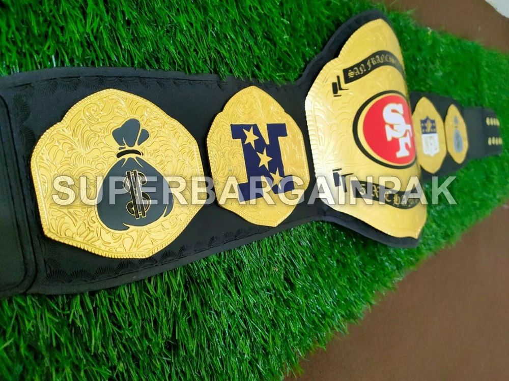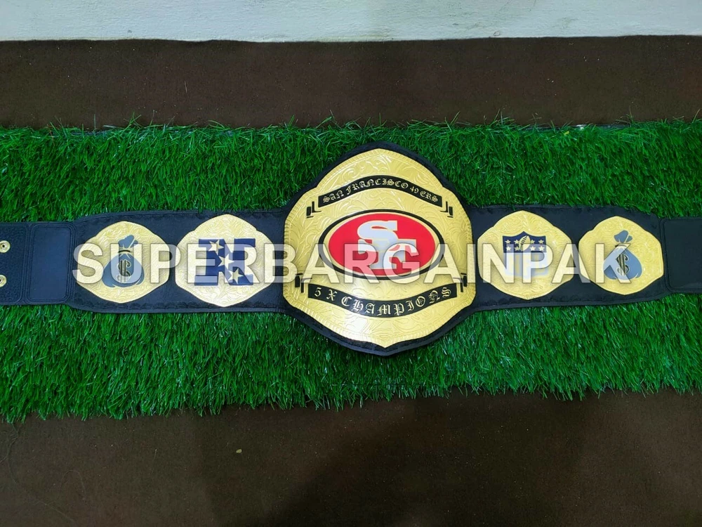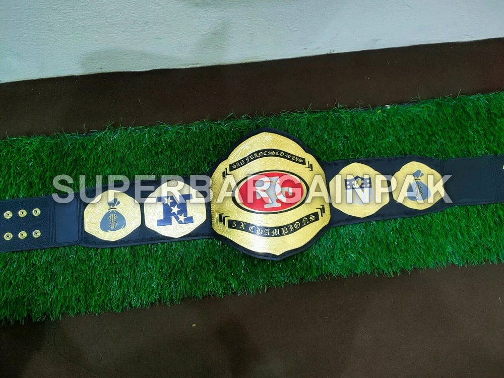 Welcome to our shop ------------------------------------------- We are specialist in manufacturing handmade products:: Our wide range of products include: >>>>Championship Belts WWE | WWF | AEW | UFC | WBC | WCW Product Description *** SF 49ers Championship Wrestling Brass 2mm Belt *** Plate Metal: Brass (Zinc available on request with additional cost) Strap: 100% Leather Largest Waist Size: Fits upto 46'' Belt Length: ~50" Weight: 4.17 lbs | 1.81 Kg Plate Thickness: 2mm (4mm Version available on demand with additional cost) ::The belt is well crafted and manufactured to meet the quality demands of fans:: Get your hands on this marvelous piece now! Note: If you need further details kindly inbox us, we will try to be as responsive as possible. ------------------------------------------- Return Policy: Generally we don't have much complains on our products and we make sure to 100% satisfy our clients. We send the product in well Bubble Wrapped packaging so there is highly unlike chance of getting damaged item. In case there is a damage, we will try to give partial refund or you can ask for full refund within 30 days after returning the belt to origin. NOTE: 1. If you have placed the order by mistake or you have purchased a wrong item then we are not going to refund that. 2. Buyer will pay the shipping fee of returning the belt. ------------------------------------------- Happy Shopping! :)