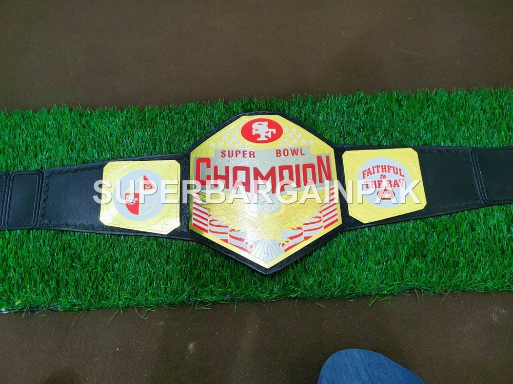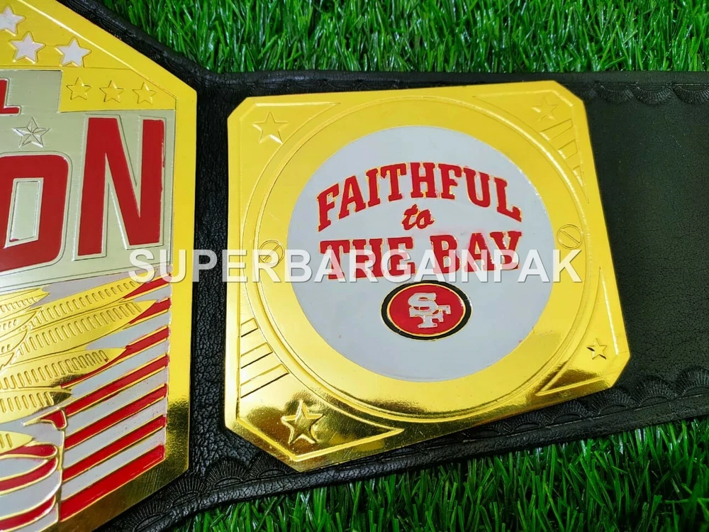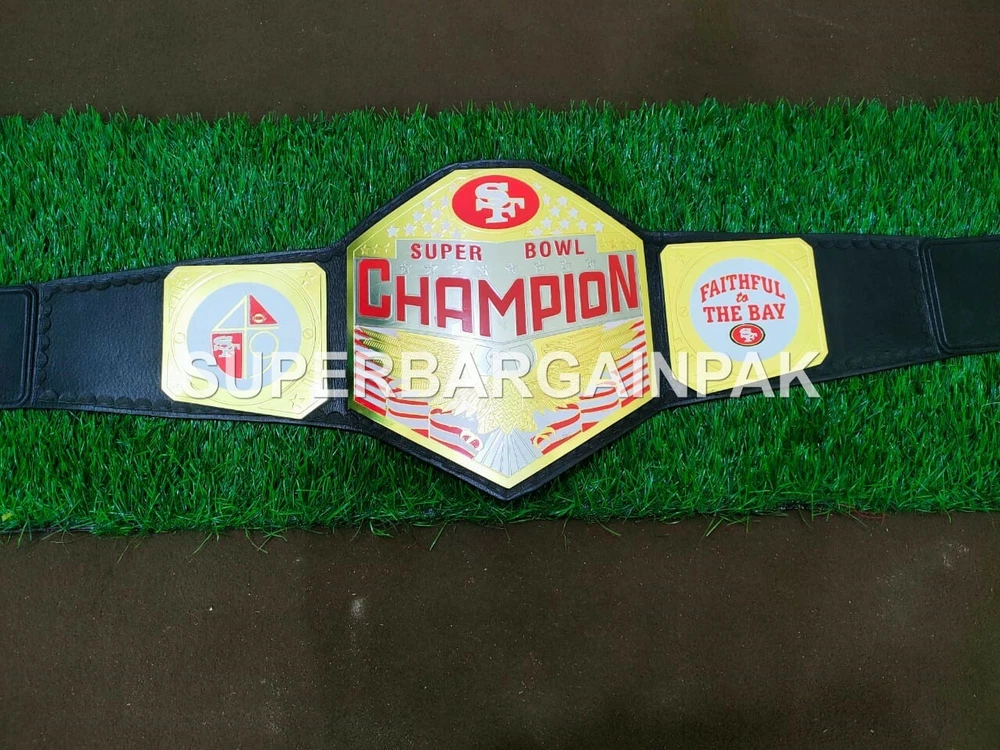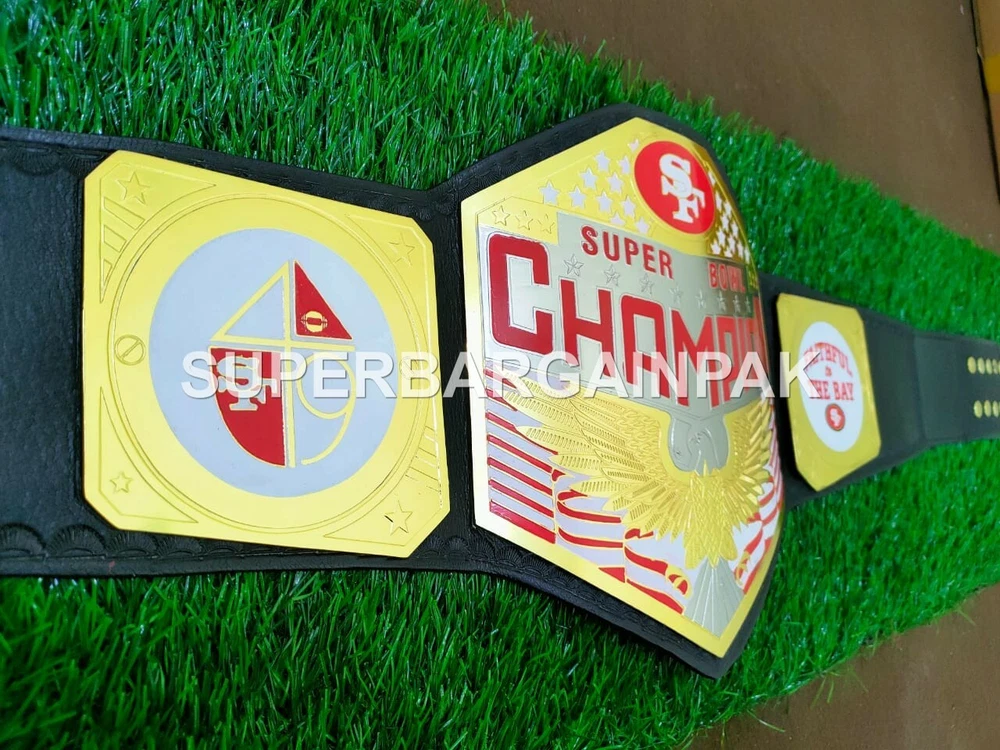 Welcome to our shop ------------------------------------------- We are specialist in manufacturing handmade products:: Our wide range of products include: >>>>Championship Belts WWE | WWF | AEW | UFC | WBC | WCW Product Description ONLY TWO SIDE PLATES *** SF 49ers Championship Wrestling Brass 2mm Belt *** Plate Metal: Brass (Zinc available on request with additional cost) Strap: 100% Leather Largest Waist Size: Fits upto 46'' Belt Length: ~50" Weight: 4.17 lbs | 1.81 Kg Plate Thickness: 2mm (4mm Version available on demand with additional cost) ::The belt is well crafted and manufactured to meet the quality demands of fans:: Get your hands on this marvelous piece now! Note: If you need further details kindly inbox us, we will try to be as responsive as possible. ------------------------------------------- Return Policy: Generally we don't have much complains on our products and we make sure to 100% satisfy our clients. We send the product in well Bubble Wrapped packaging so there is highly unlike chance of getting damaged item. In case there is a damage, we will try to give partial refund or you can ask for full refund within 30 days after returning the belt to origin. NOTE: 1. If you have placed the order by mistake or you have purchased a wrong item then we are not going to refund that. 2. Buyer will pay the shipping fee of returning the belt. ------------------------------------------- Happy Shopping! :)