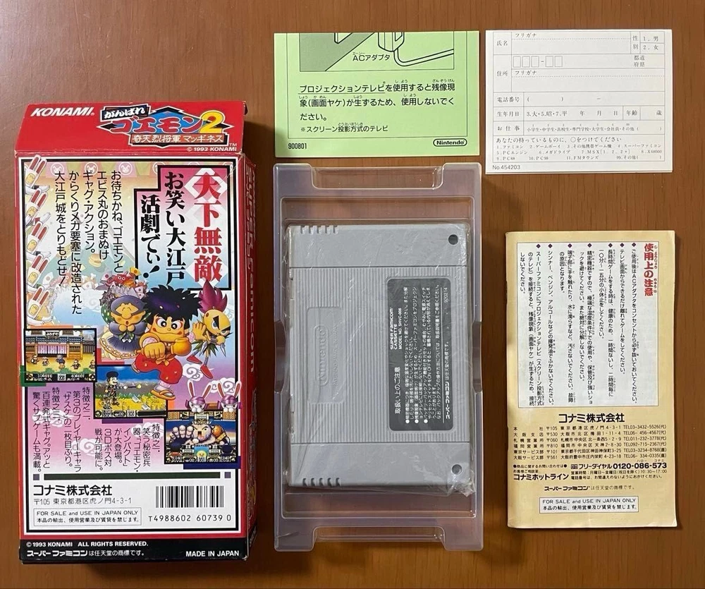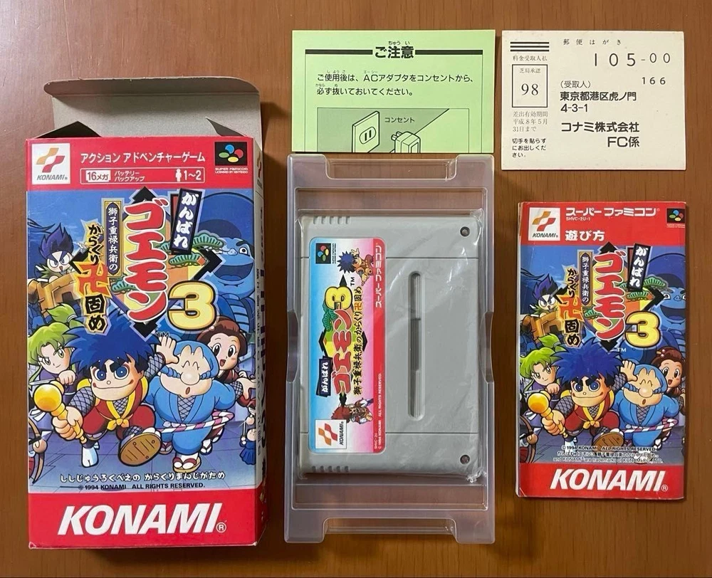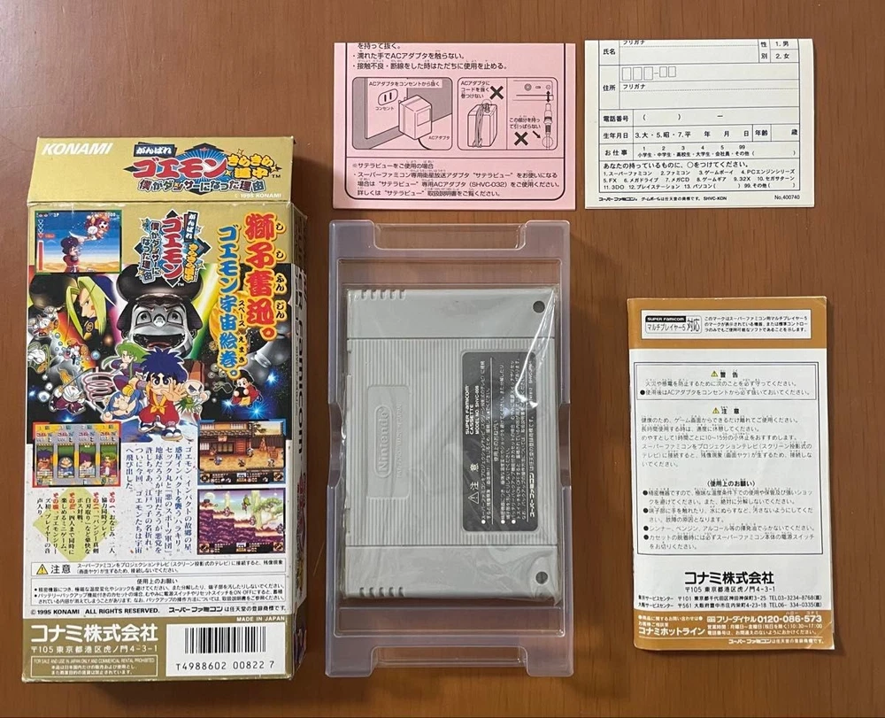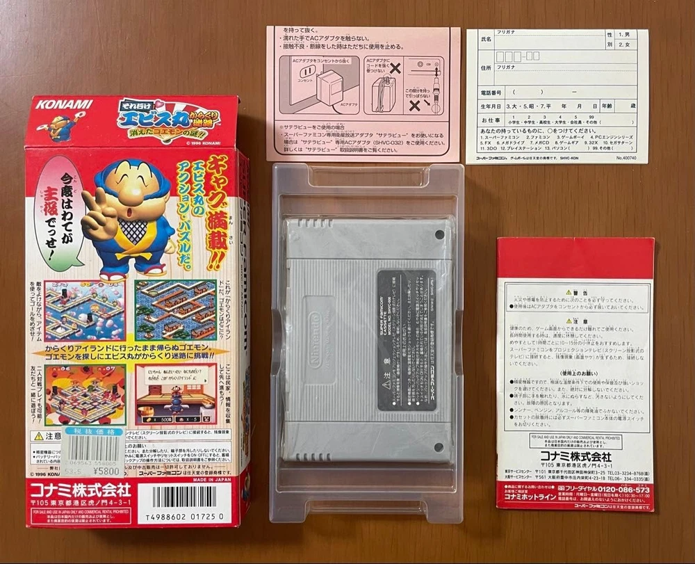 SFC Ganbare Goemon Go Ebisumaru Super Famicom box theory series 5-piece set Key Features Experience the Konami Super Famicom game series, including: - "Ganbare Goemon: Yuki Hime Sukui Emaki" - "Goemon 2: Kintetsu Shogun Maginesu" - "Goemon 3: Shishi Jurobei no Karakuri Manji Gatame" - "Goemon Kirakira Dōchū: Boku ga Dancer ni Natta Wake" - "Sore Ike Ebisu Maru: Karakuri Meiro" All games have been tested on a Nintendo Super Famicom console. The package includes all accessories shown in the photos. Please note, due to age, the box and manuals may show signs of wear and minor damage. This is a vintage collection, so please consider this when purchasing. Perfect condition items are not available. Item Specifics: - Platform: Super Famicom - Publisher: Konami - Genre: Action/Adventure - Region Code: Japan Specifications Brand NO BRAND Country Japan Country/Region of Manufacture Japan Color multicolor Type VideoGame Product Description 🌎 Shipping & Import Duties For U.S. Buyers: Shipped via DDP (Delivered Duty Paid) . All import duties and taxes are included in the listed price. No extra payment is required upon delivery. For Non-U.S. Buyers: Shipped via DDU (Delivered Duty Unpaid) . Import duties and taxes may apply and are the buyer’s responsibility. We ensure safe packing and smooth customs clearance for all destinations.