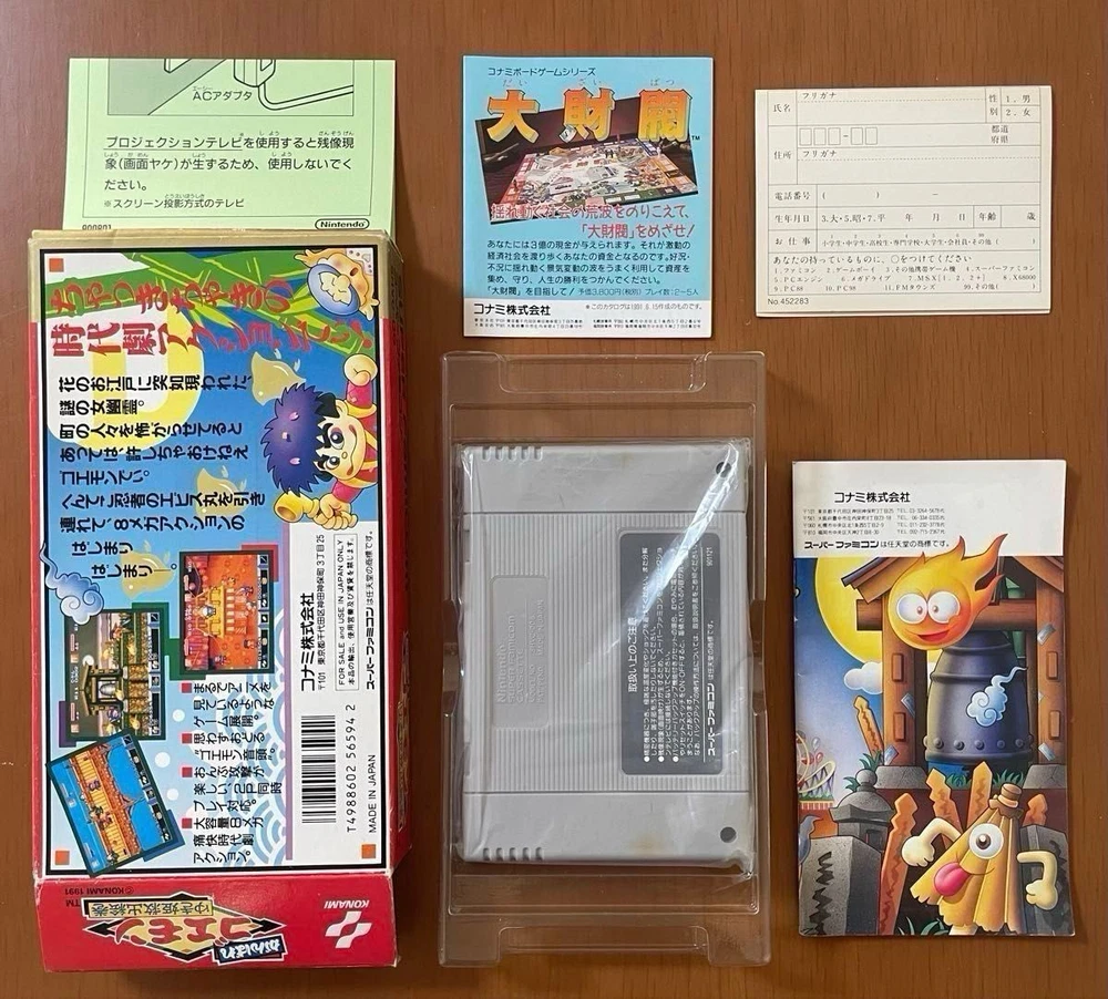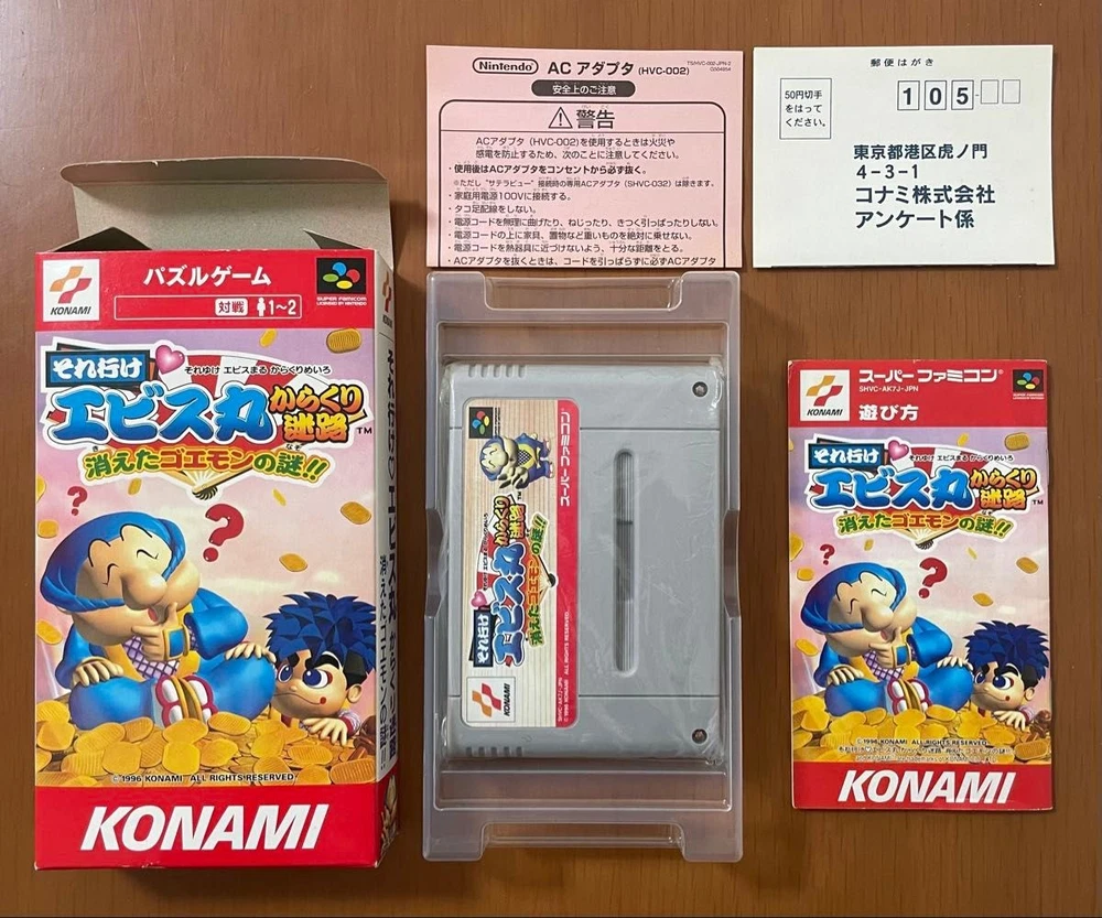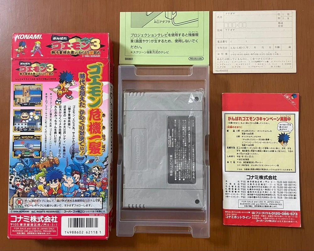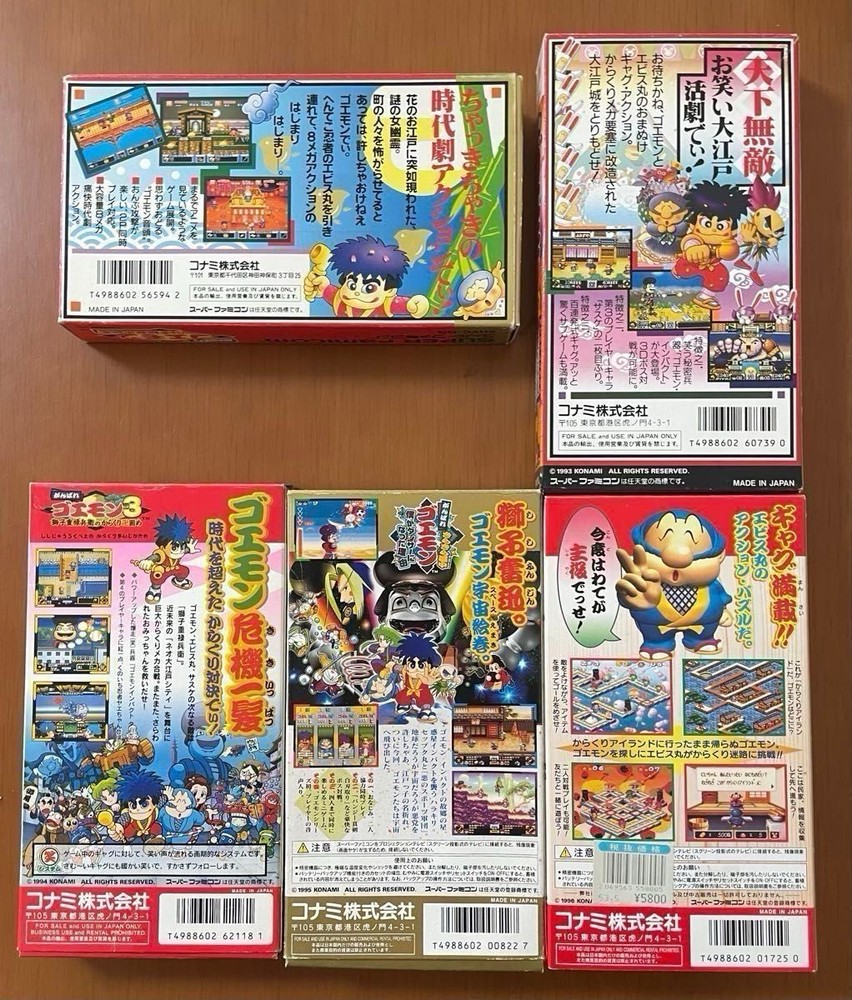 SFC Ganbare Goemon Go Ebisumaru Super Famicom box theory series 5-piece set Key Features Experience the Konami Super Famicom game series, including: - "Ganbare Goemon: Yuki Hime Sukui Emaki" - "Goemon 2: Kintetsu Shogun Maginesu" - "Goemon 3: Shishi Jurobei no Karakuri Manji Gatame" - "Goemon Kirakira Dōchū: Boku ga Dancer ni Natta Wake" - "Sore Ike Ebisu Maru: Karakuri Meiro" All games have been tested on a Nintendo Super Famicom console. The package includes all accessories shown in the photos. Please note, due to age, the box and manuals may show signs of wear and minor damage. This is a vintage collection, so please consider this when purchasing. Perfect condition items are not available. Item Specifics: - Platform: Super Famicom - Publisher: Konami - Genre: Action/Adventure - Region Code: Japan Specifications Brand NO BRAND Country Japan Country/Region of Manufacture Japan Color multicolor Type VideoGame Product Description 🌎 Shipping & Import Duties For U.S. Buyers: Shipped via DDP (Delivered Duty Paid) . All import duties and taxes are included in the listed price. No extra payment is required upon delivery. For Non-U.S. Buyers: Shipped via DDU (Delivered Duty Unpaid) . Import duties and taxes may apply and are the buyer’s responsibility. We ensure safe packing and smooth customs clearance for all destinations.
