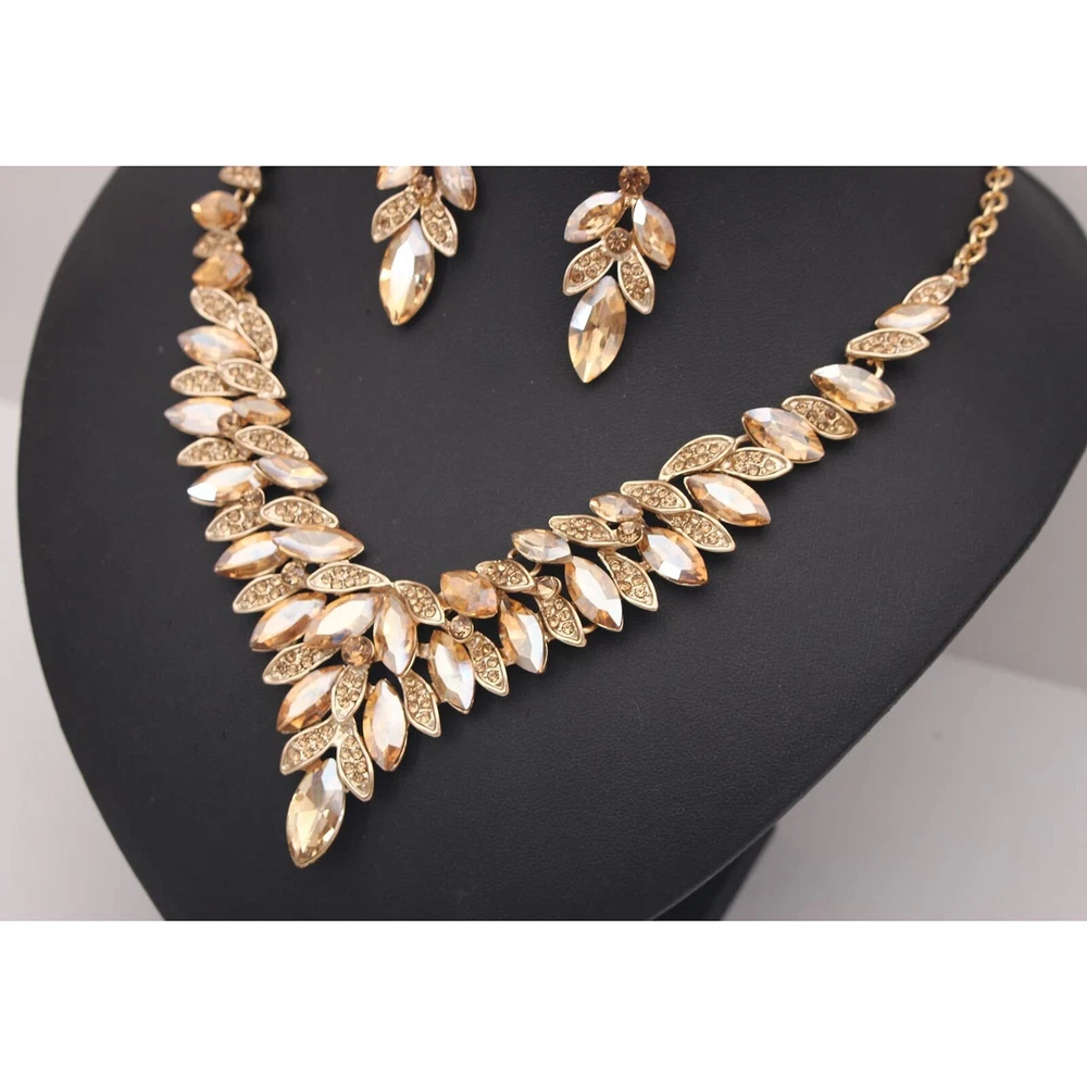 SFE Jewelry set for Women Rhinestone Austrian Crystal Statement Necklace Dangle Earrings Link Bracelet Ring Wedding Party Jewelry Set for Bridal Bridesmaid Product Details Color: Champagne-Gold Plated Brand: SFE MPN: Does not apply UPC: Does not apply EAN: Does not apply Department : womens Date First Available : April 26, 2022 Brand, Seller, or Collection Name: SFE Metal: gold plated Material: Metal Gem Type: Crystal Clasp: Lobster Clasp Ring size: 1.2 Number of stones: 30 SFE Brands: This Jewelry Sets could be Birthday Gifts, Anniversary Gifts, Christmas Gifts, Graduation Gifts,Valentine's Day Gifts,Bridal Wedding,Bridesmaid,Party,Birthday, Prom,etc. Never outmoded design, elegant and stylish, you will never regret for this choice. The earrings skin test grants allergy free, nickel-free and lead-free, wear it rest assured. About SFE Brands: We have a strong design team, we will launch different styles every season, follow us! We will give you a different surprise. Tips: 1.Wipe your earrings up with wipes: they perform miracles on jewelry. Avoid contact with water, no baths, pools, sea water, etc. If it gets wet that can leave dark water spots which are difficult to remove 2.Then wipe with a clean dry soft cotton cloth to bring back the shine. Please don't wear it when sleeping. To keep your gorgeous jewelry looking like new, take it off at the end of the day and give it a quick wipe down with a microfiber cloth 3.Put it inside a soft cloth pocket or fabric swath, avoid it from rubbing against other jewelry.