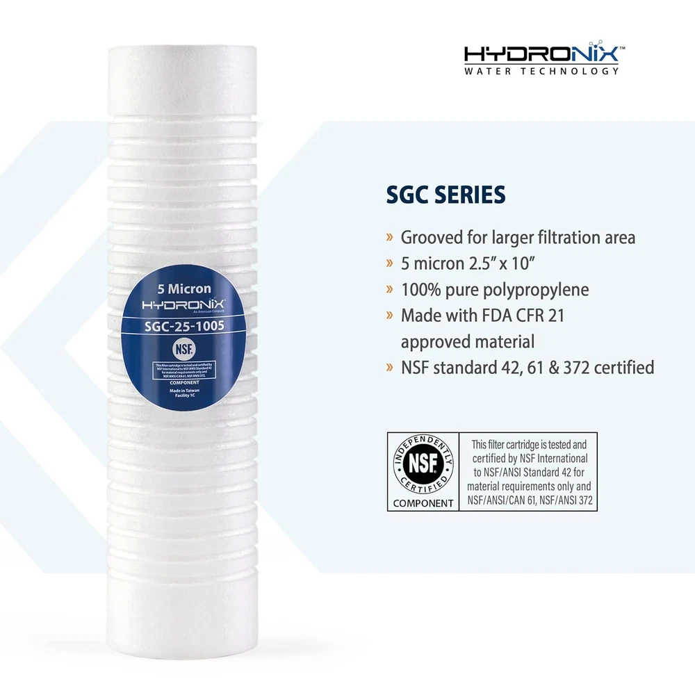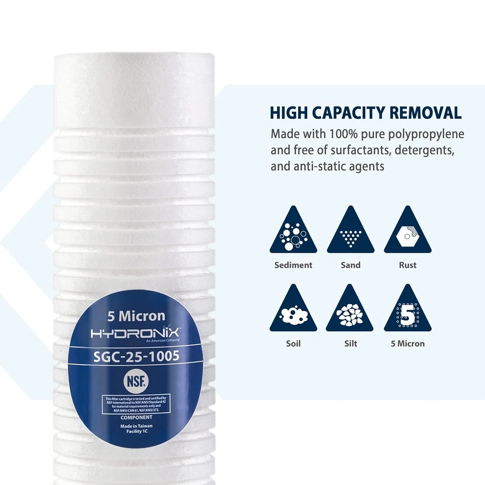 Store New Arrivals Add to Favorite View Feedback Contact SGC-25-1005 Sediment Grooved Water Filter Cartridge 2.5" X 10" 5 Micron - Replaces AP110 Description Item model number SGC-25-1005 Unit Count 1.0 Count External Testing Certification ANSI, NSF Product Dimensions 2.5"D x 2.5"W x 9.88"H Material Polymer Country of Origin Taiwan Is Discontinued By Manufacturer No Hydronix Sediment Grooved Filter 2.5" x 9 7/8" NSF /ANSI Standard 42 Certified Grooved Outer Area for longer life and extended filtration capacity Ideal for Food and Beverage applications Product Description Committed to providing you safe and high-quality products We're dedicated to providing you with high-performance products and great results. With most of our brands and products certified by NSF/ANSI standards, you can rest assured that you’re getting the best, most reliable water filtration possible. An Industry leader in water filtration used worldwide Our years of product knowledge combined with our high manufacturing standards allow us to create solutions for multiple applications—economical without sacrificing reliability. Innovative and reliable products that exceed expectations We are a global leader in water filtration solutions for residential, commercial, and municipal needs. And provide our customers with innovative and reliable products that exceed expectations. ABOUT US We offer the best prices around on high quality products. Our E-store includes media such as books, movies, music and games while offering electronics, toys, sporting apparel, clothing, tools, general home, garden items and more. SHIPPING We are always working hard to ensure your package arrives as soon as possible. Please understand that some factors like weather, high postal traffic, and the performance of shipping companies are outside of our control. We offer free shipping to the lower 48 states and ship within 2 business days of payment, usually sooner. We do not accept P.O. Boxes. Please provide a physical address. For shipping outside of the continental USA, we only use eBay's Global Shipping Program.The item is shipped to KY and then sent to the rest of the world. International customers are responsible for all duties and taxes. Continue to check out in order to calculate costs for shipping the item to your country. Messages regarding eBay's Global Shipping Program MUST be directed at eBay EXCLUSIVELY. RETURNS We offer a 30-Day Return Policy on items which you are not completely satisfied with. You have the option for a full-refund or an exchange of the item. No returns are available on items shipped outside of the USA. PAYMENT We accept PayPal. CONTACT US This page content is yet to come Please ad us to your favorite seller and visit again later Thank You CUSTOMER SATISFACTION We try our very best to make sure every customer is completely satisfied. If there's a problem, message us! We're happy to help. WE ACCEPT Copyright © 2021 AutoDS. | All Rights Reserved