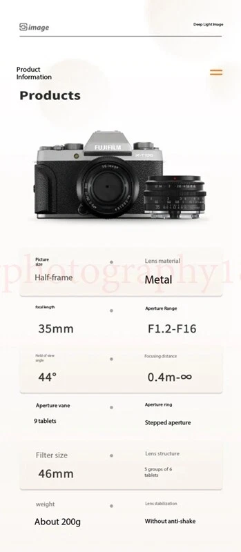 SGimage 35mm F1.2 Large Aperture APS-C Portrait Lens Sony Canon Nikon Fuji M4/3 Hign-concerned Chemical : None Applicable Camera Specifications : APS-C Mirrorless Camera Macro Magnification : 0.170 times Maximum Magnification : 0.170 times Minimum Aperture : F22 Focal Length : 35mm Launch Date : 2016 Package : Yes Weight : 201g-300g Lens Stabilization Type : None Maximum Aperture : f/1.2 Lens UV Filter Size : 46mm Caliber : 48mm Number of Diaphragm Blades : 10 Blades Focus Mode : MF Focus Type : Standard Prime Type : Fixed Focus Lens Full Frame : No Lens Type : Manual Scene Type : Wedding,Business,HUMAN,Sports,Insect,Architecture,Special,Scenery,Still Life,Travel,People Brand Name : JYYXF Origin : Mainland China Certification : CE,FCC Use : Camera Payment Delivery details Terms of sales About us Contact us Payment Warning : every international Order will have inport Tax problem with Customs ,Please clear customs by buyer,we will lower the declare price on invoice Please do not open the Return directly ,any order problem You can send message to us first ,we will solve it very fast ,thank you 1.We accept payment via T/T, PayPal for USD dollars .Alipay and Wechat payment for RMB 2.We will deliver your goods within 20days after payment. 3.We will pack the goods well with exporting packages and bubble wrap to make sure all goods in a good condition during storage and delivery. 4.We usually use express delivery like DHL, UPS, FedEx, TNT and EMS, as we enjoy perfect discount in these companies. 5.We have well-trained and professional sales & after-sale services persons who can speak English fluently. Delivery details Each international package will have inport Tax problem with Customs ,Please clear customs by buyer Terms of sales 100% Official and official product About us China mainland super top seller wholesale company about video studio photography Camera equipment cargo .100% brand original and official Contact us Please send ebay message for asking product , we will reply you in 24 hours ,thank you