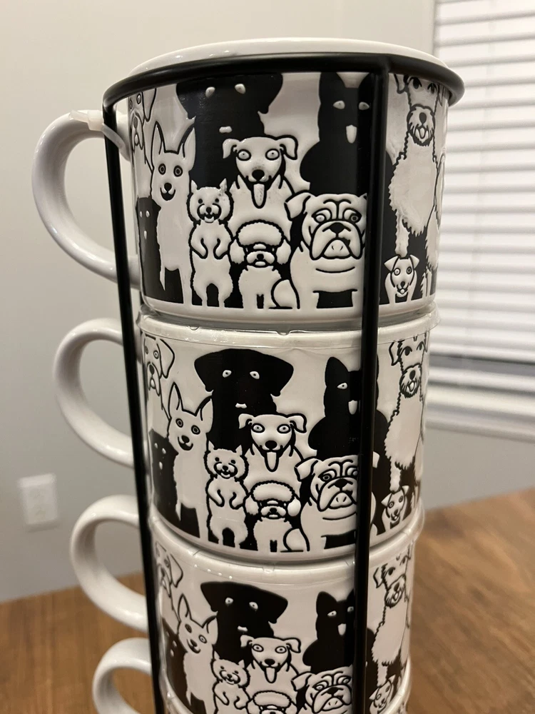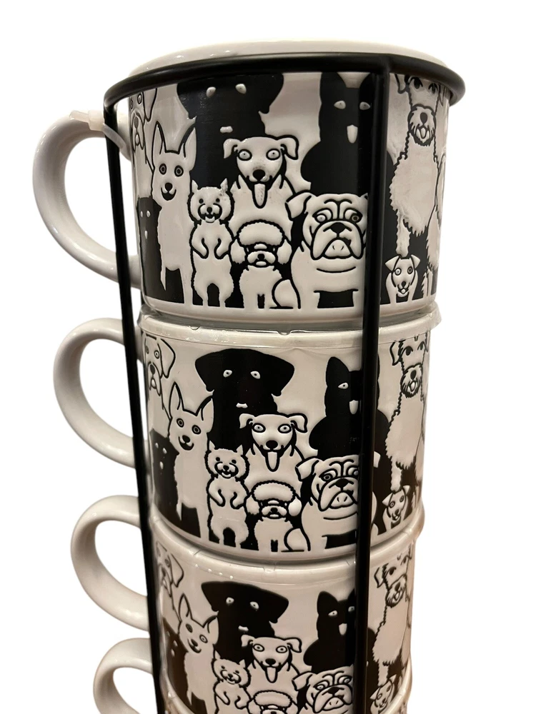 Style:ContemporaryBrand:WhiteTheme:Dogs & Puppies, Mugs, Stackable MugsFeatures:StackableOccasion:All Occasions, Birthday, Adult, Christmas, Father's Day, Good Luck, Other World Celebrations, Summer, Spring, WinterColor:Black And WhitePersonalize:NoShape:RoundMaterial:CeramicSet Includes:MugPattern:DogsType:Coffee Mug SetNumber of Items in Set:Five-PieceCountry/Region of Manufacture:China