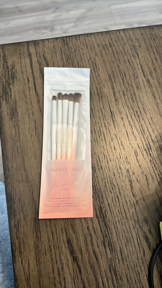 SHADES BY SHAN Brush Set Collection. Brand new never used Cruelty-free and Vegan Meet your new makeup bag must-have: this SHADES BY SHAN five-piece vegan eye brush set! With super soft synthetic bristles and labeled tools, this set makes achieving flawless eye looks easier than ever—whether you're a pro or just starting out. How to Use it Each brush is labeled for easy use—just pick one and start creating!