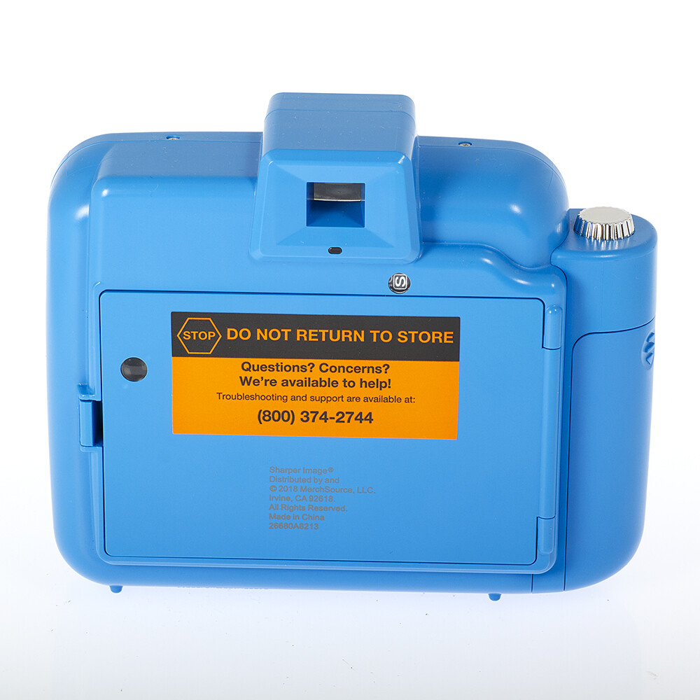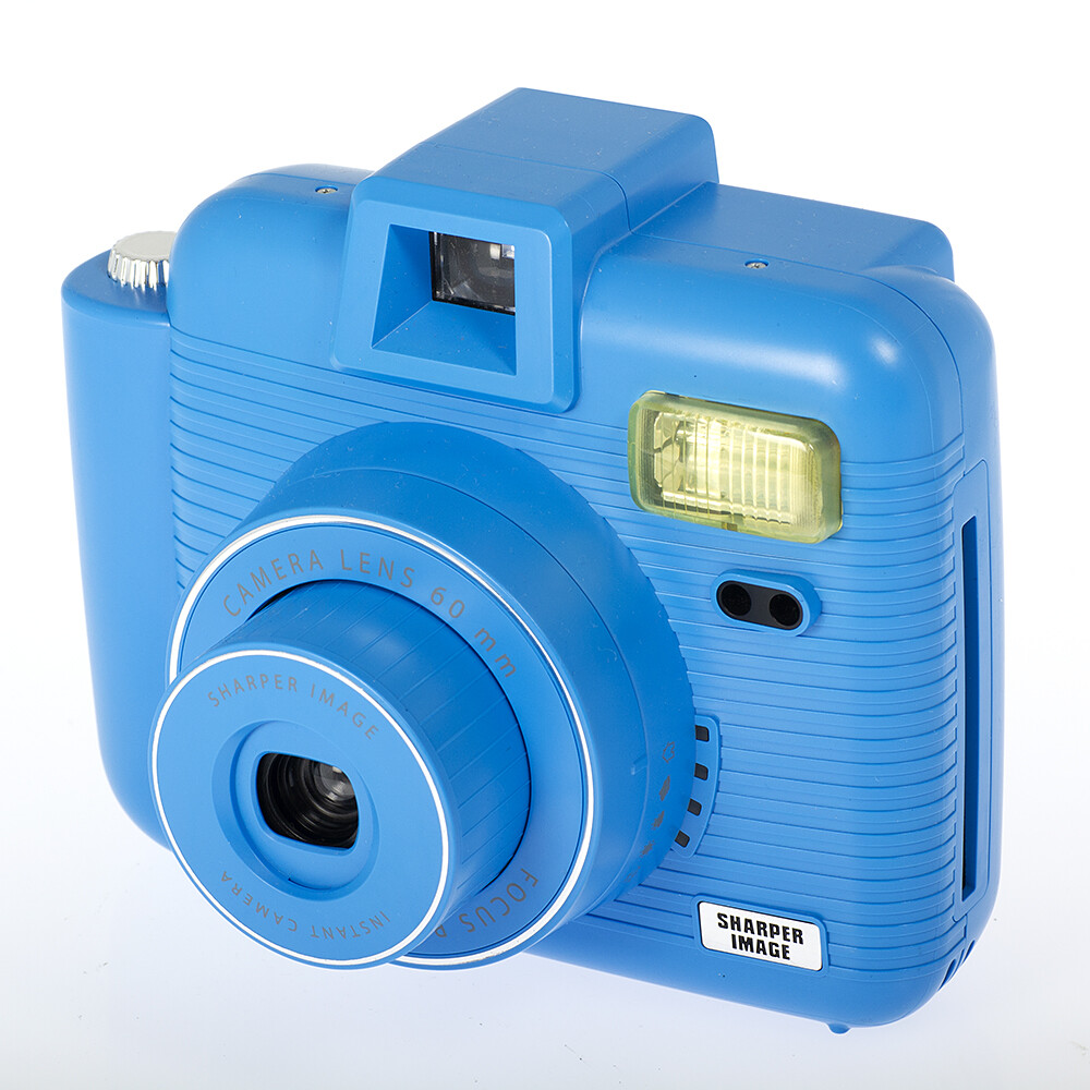 This is a Sharper Image IC2018 instant camera. Compatible with the Instax Mini system / paper. 60mm lens. Built-in flash. Uses regular AA batteries. Tested and verified to be fully functional. Excellent condition.