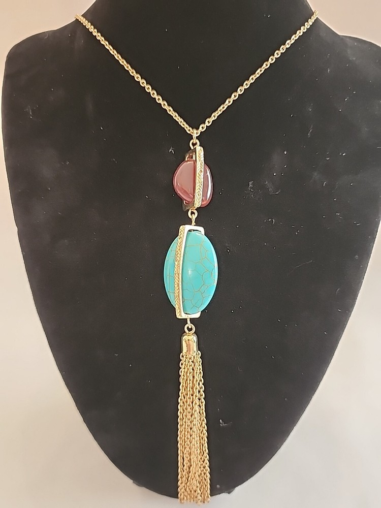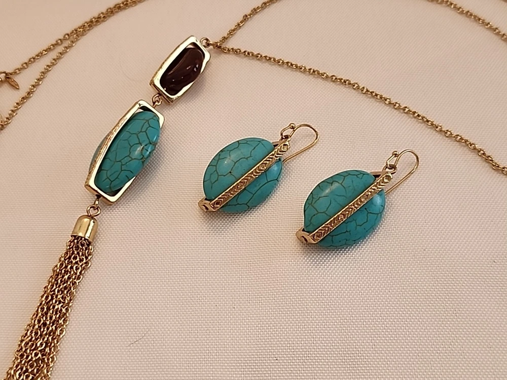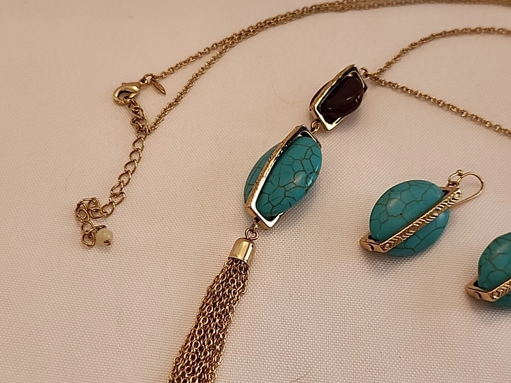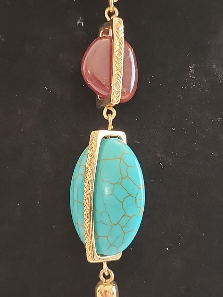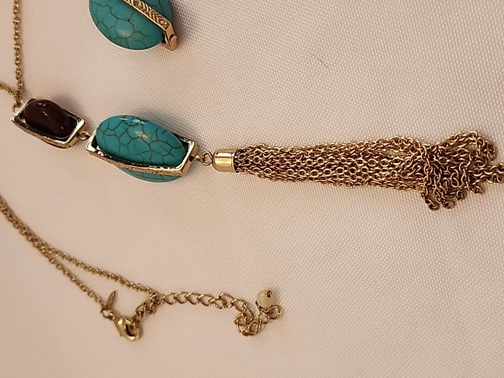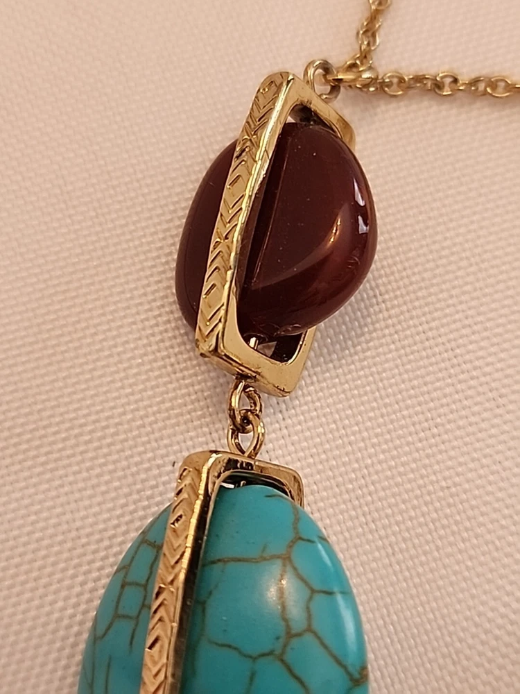 Elevate your jewelry collection with this stunning SHB necklace and earring set. The oval pendant and floating keepsake locket are adorned with a beautiful array of multicolor stones, including turquoise howlite, brown moonstone, and lucite. The 23-inch chain is made of metal alloy and features a lobster clasp and cable chain type.