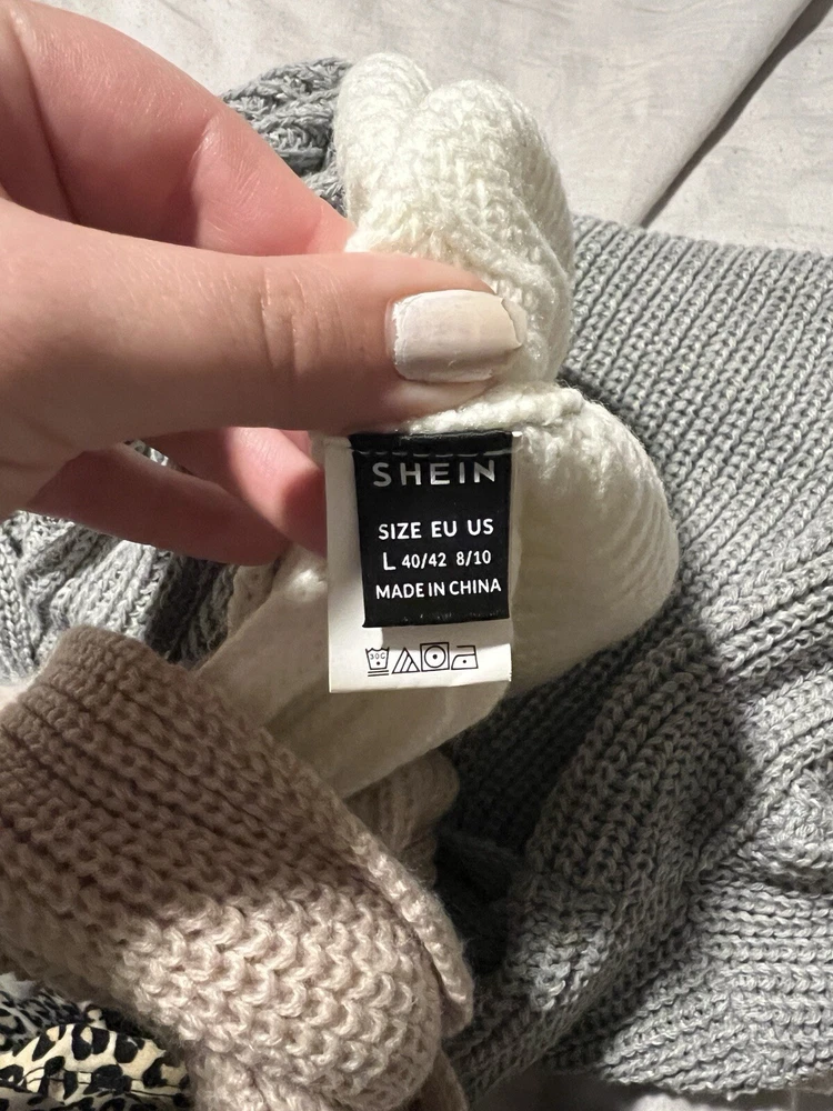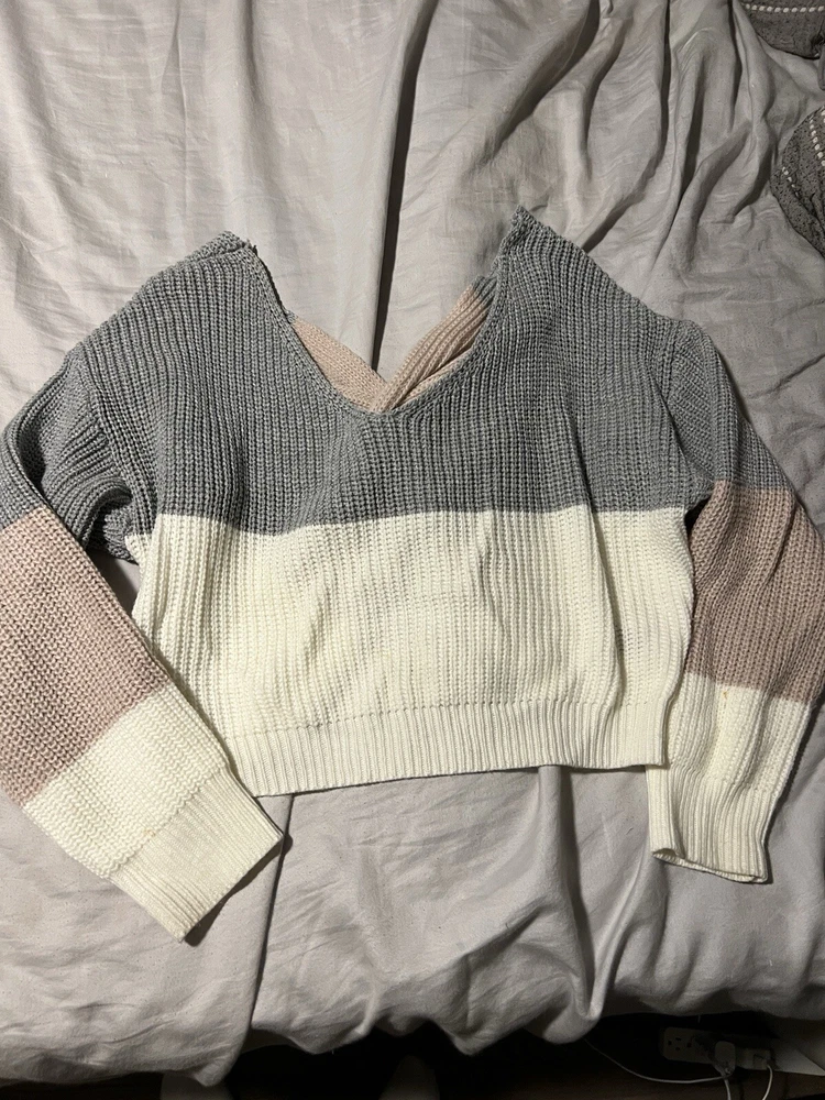 This SHEIN sweater is a must-have for any fashion-forward woman. The soft and comfortable material makes it perfect for any occasion, while the grey, white, and pink colors add a pop of color to your wardrobe. The pullover style and open back design make it a versatile piece that can be dressed up or down. Available in size large, this sweater is perfect for regular-sized women who want to stay cozy and stylish. The brand, SHEIN, is known for its high-quality clothing and this sweater is no exception. Get your hands on this chic and trendy piece today.