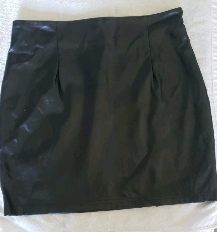 SHEIN Women’s M ( 6) Black Short Faux Leather Zip-up Skirt