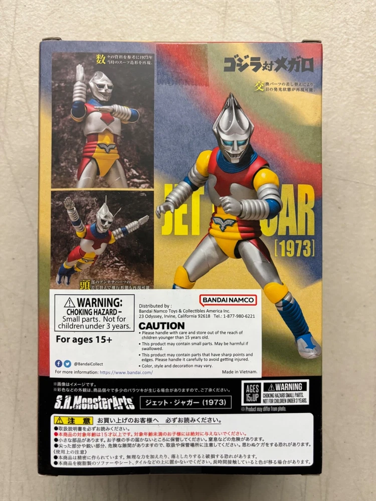 S.H.MonsterArts Bandai Godzilla Jet Jaguar Figure 1973 Version Brand New & Factory Sealed US Seller - In Stock & Ready to Ship Bandai Tamashii Nations presents Jet Jaguar (1973) from Godzilla vs Megalon as S.H.Monsterarts Action Figure. Sculpted based on a thorough investigation of materials from the film, it is a faithfully accurate representation of the iconic character. S.H.MonsterArts posability brings Jet Jaguar to life, letting you re-create dynamic poses from famous scenes. An optional pair of extended antenna for display in flight mode is included. And, as a bonus, so is a human-sized minifigure of Jet Jaguar, replicating his size pre-transformation! This figure stands approximately 6.3 inch tall and includes Two left and three right optional hands, Beam effect parts, Jet Jaguar minifigure, Antenna set, Support parts.