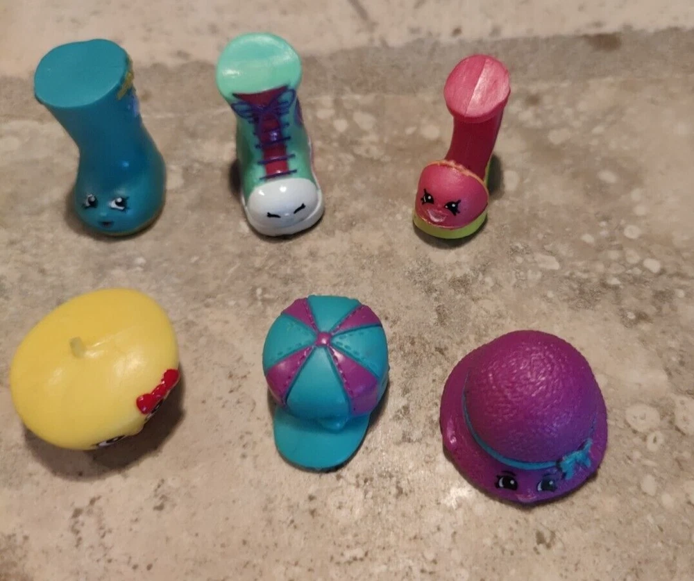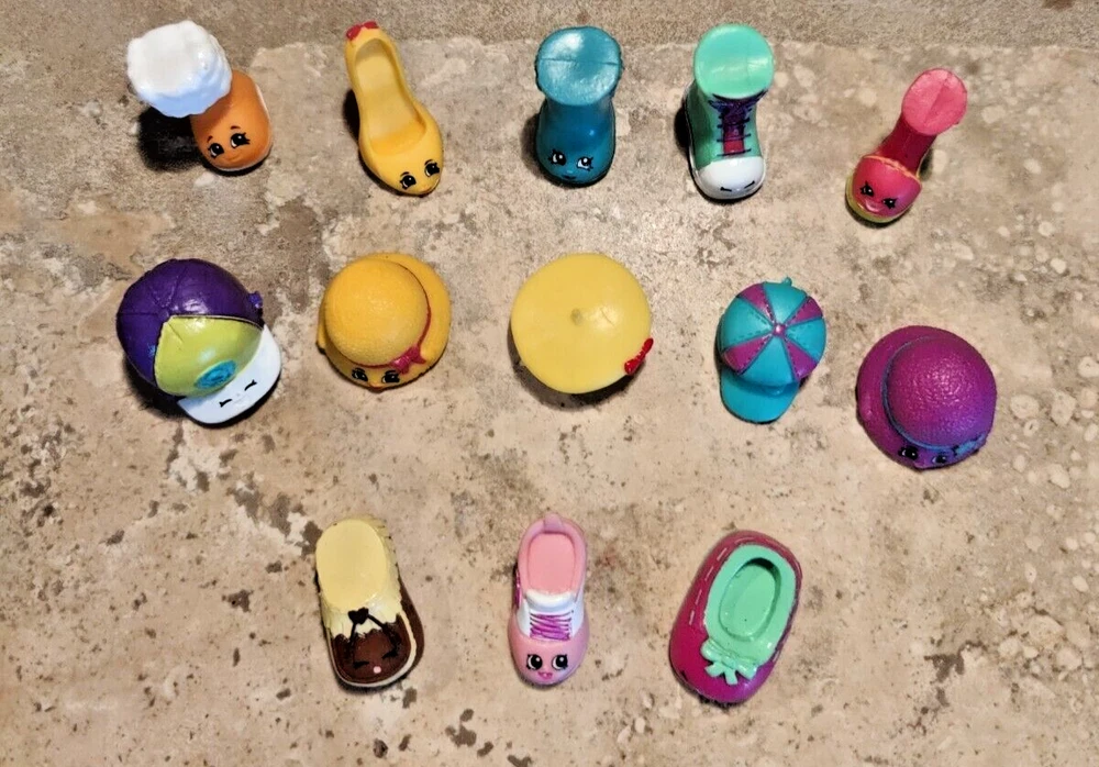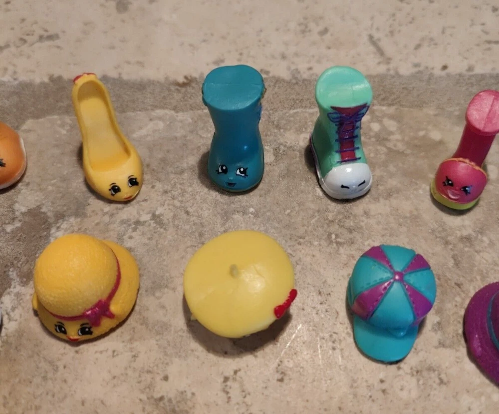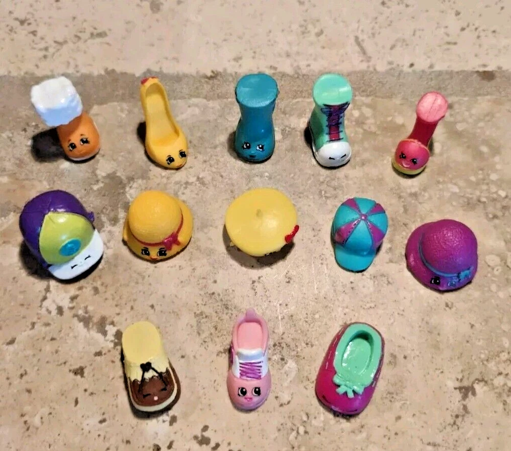 This lot of 13 colorful shoes, hats, and boots is a must-have for any Shopkins collector or fan. The collection includes items from the Moose Enterprise brand and features a variety of colorful designs to build your sets. (Toy8-Lot)