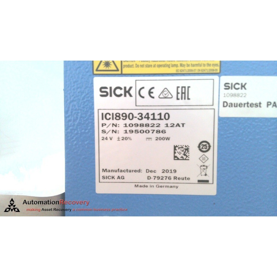 SICK ICI890-34110 ILLUMINATION FOR ICD89X 1098822 ICI890-34110 GENERAL INFORMATION: MANUFACTURED BY: SICK MANUFACTURER PART NUMBER: ICI890-34110 DESCRIPTION: SICK ICI890-34110 ILLUMINATION FOR ICD89x LENGTH: 900 mm LIGHT SOURCE: VISIBLE WHITE LIGHT M12 CONNECTOR ALT ID: 1098822 CONDITION: FNFP-THIS IS A NEW ITEM IN ITS ORIGINAL PACKAGE, THE PACKAGE MAY HAVE BEEN OPENED FOR INSPECTION AND/OR OTHER PURPOSES. Common Shipping Questions: Below options must be expressed and communicated with the seller prior to payment. Shipping refunds will not be provided after payment. UPS & FedEx - We can provide shipping on your own shipping account for a $2 handling fee Warehouse Pickup – We are able to accommodate pickup at our warehouse DHL - We can help with DHL shipping. You will need to provide the label and arrange for pickup International buyers – please note: Import duties, taxes, and charges aren't included in the item price or postage cost. These charges are the buyer's responsibility. Please check with your country's customs office to determine what these additional costs will be, prior to buying. Learn more about what we do