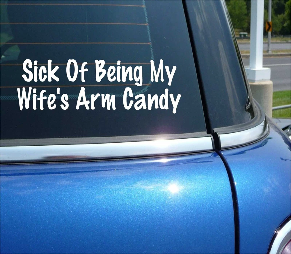 SICK OF BEING MY WIFES ARM CANDY DECAL STICKER FUNNY SPOUSE MARRIAGE CAR