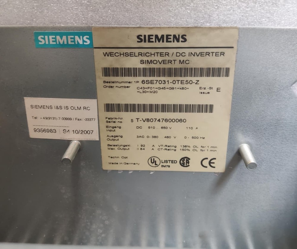 HomeSIEMENS | 6SE7031-0TE50-Z | DC INVERTER SIMOVERT MC | TESTED OKAY , FAST SHIP