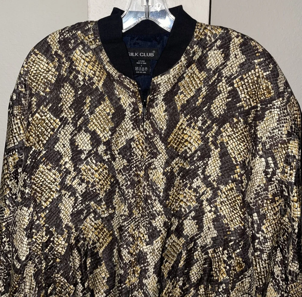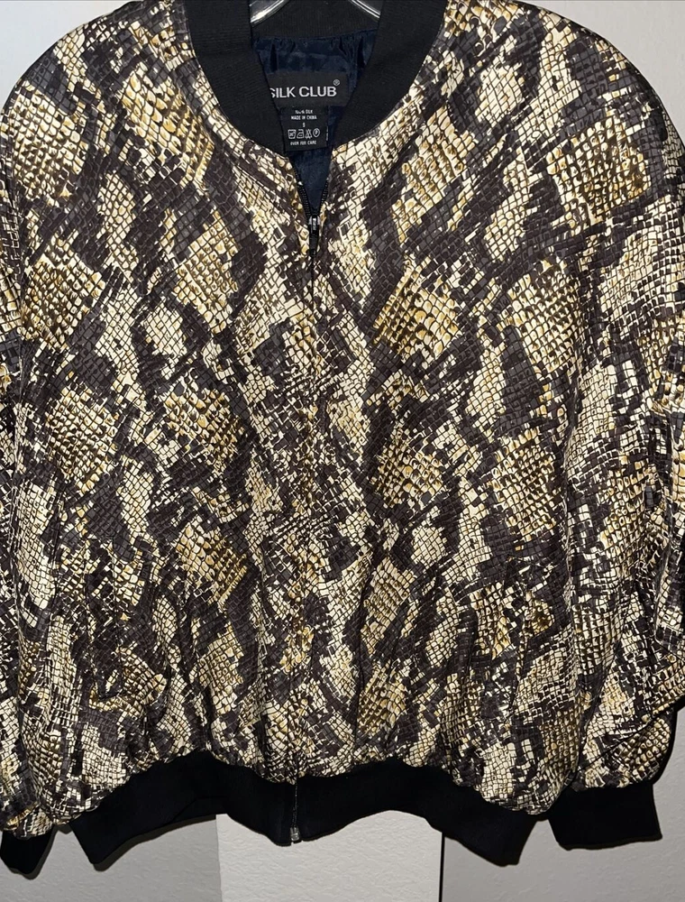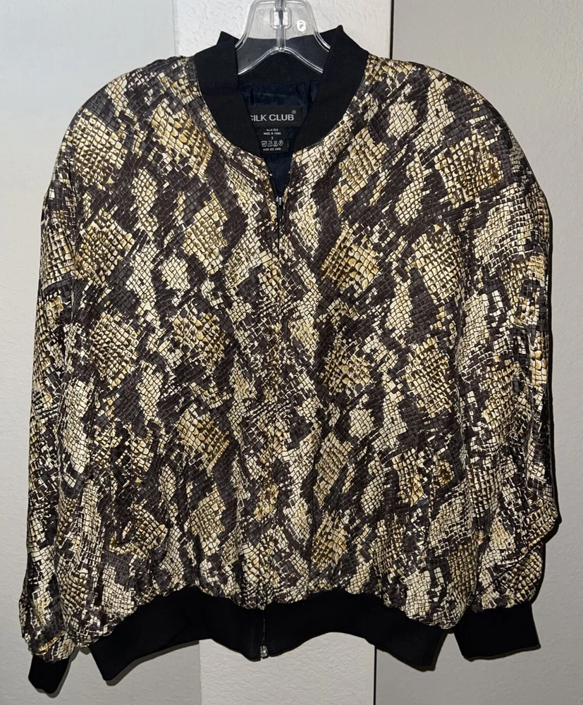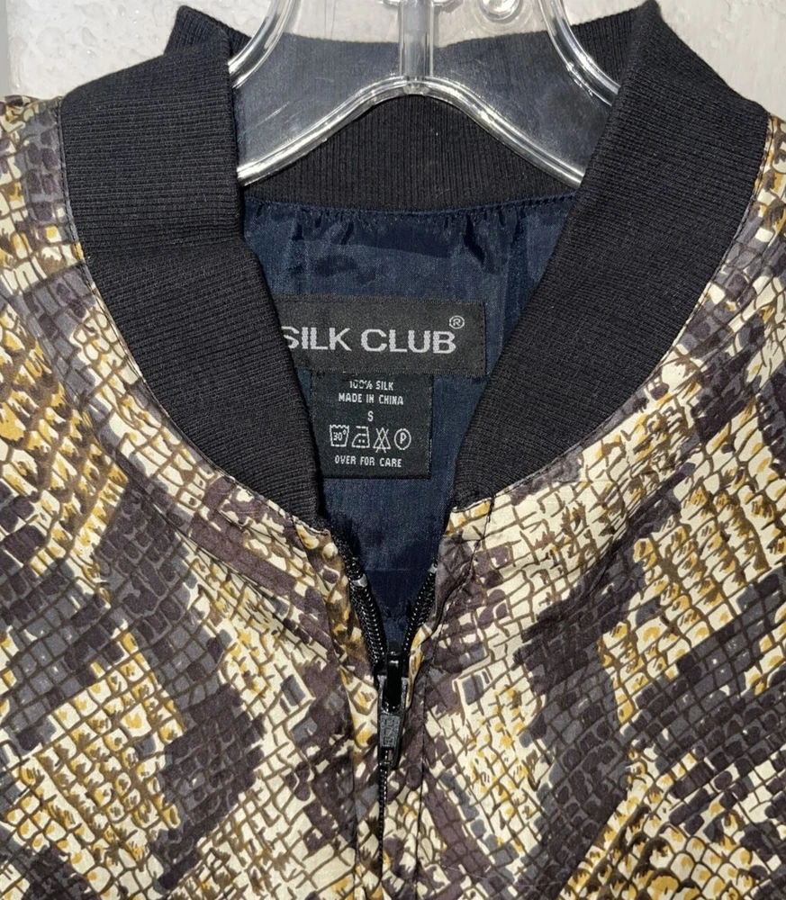 SILK CLUB Animal Print All Over Size Small Full Zip Bomber Jacket