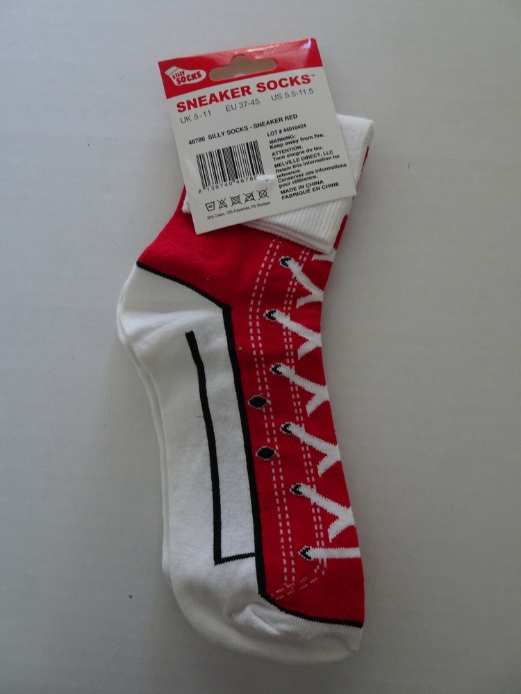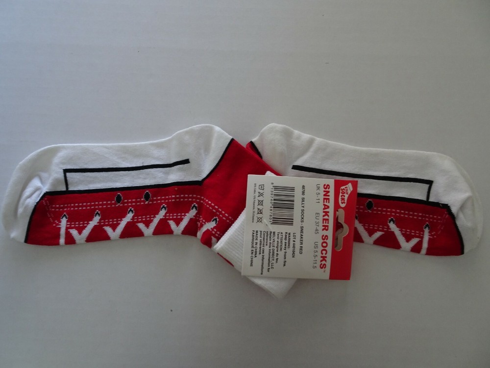 SILLY SOCKS Red White Unisex Sneaker Socks Sizes 5.5-11.5 Comfort Fit
