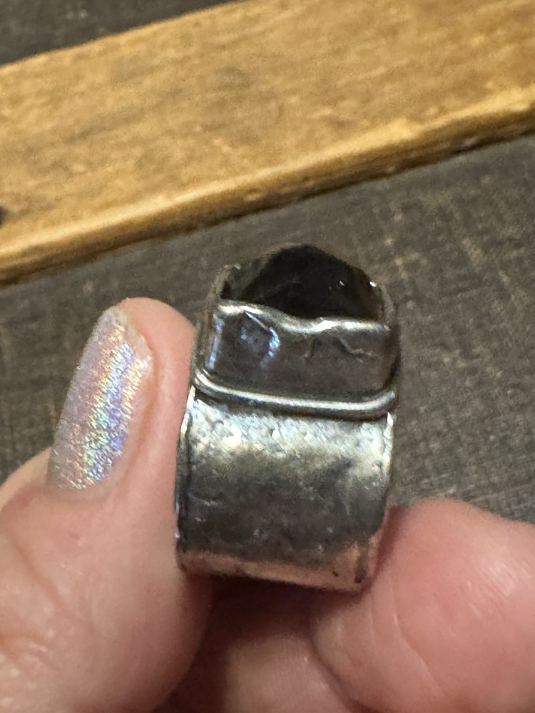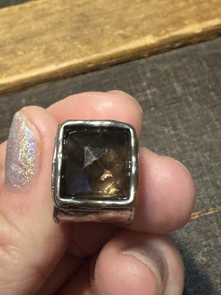 The SILPADA Sterling Silver Wide Band Smoky Quartz Ring is a vintage piece crafted with a hammered design, featuring a round light brown quartz stone as the main focal point. This unique ring is handcrafted with sterling silver and signed by the brand Silpada, adding a touch of authenticity and artistry to the piece. The wide band design adds a stylish and bold element to the ring, making it a beautiful accessory for those who appreciate beauty, art, and love in their jewelry choices.