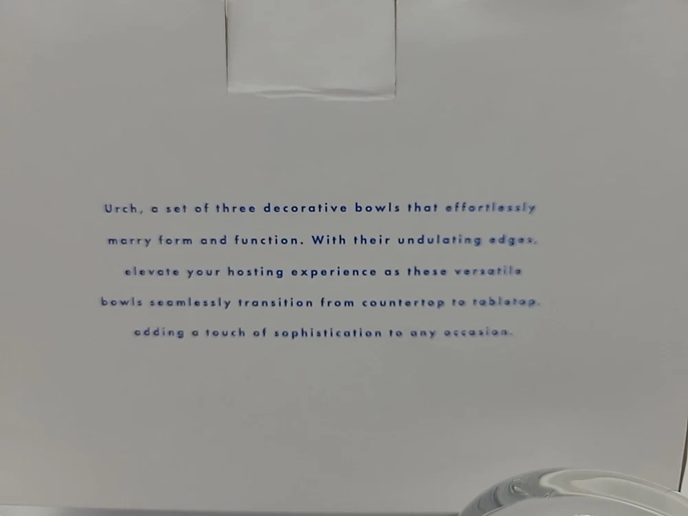 Finish:ShinyMPN:SIN-HO-006Occasion:All OccasionsModel:Urch-Decorative Glass BowlsBrand:SinCharacter Family:n/aShape:Modern WaveCharacter:n/aCountry of Origin:ChinaUPC:Does not applygtin13:Does not applyStyle:ModernDepartment:AdultsOriginal/Reproduction:OriginalType:Bowl SetTheme:ModernMaterial:GlassColor:ClearPersonalize:NoFeatures:Dishwasher SafePattern:SolidNumber of Items in Set:Three-Piece