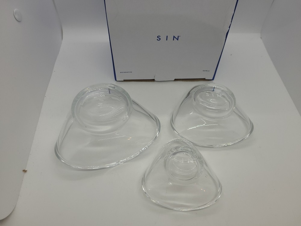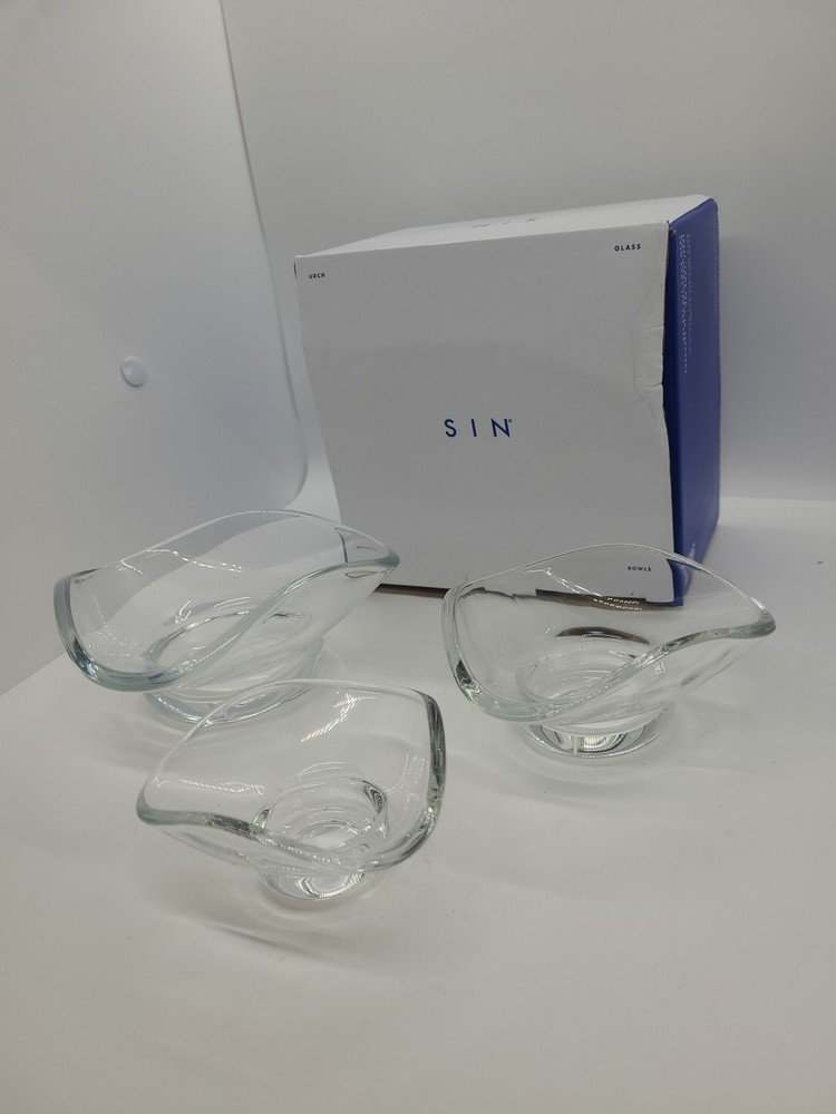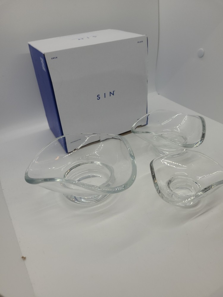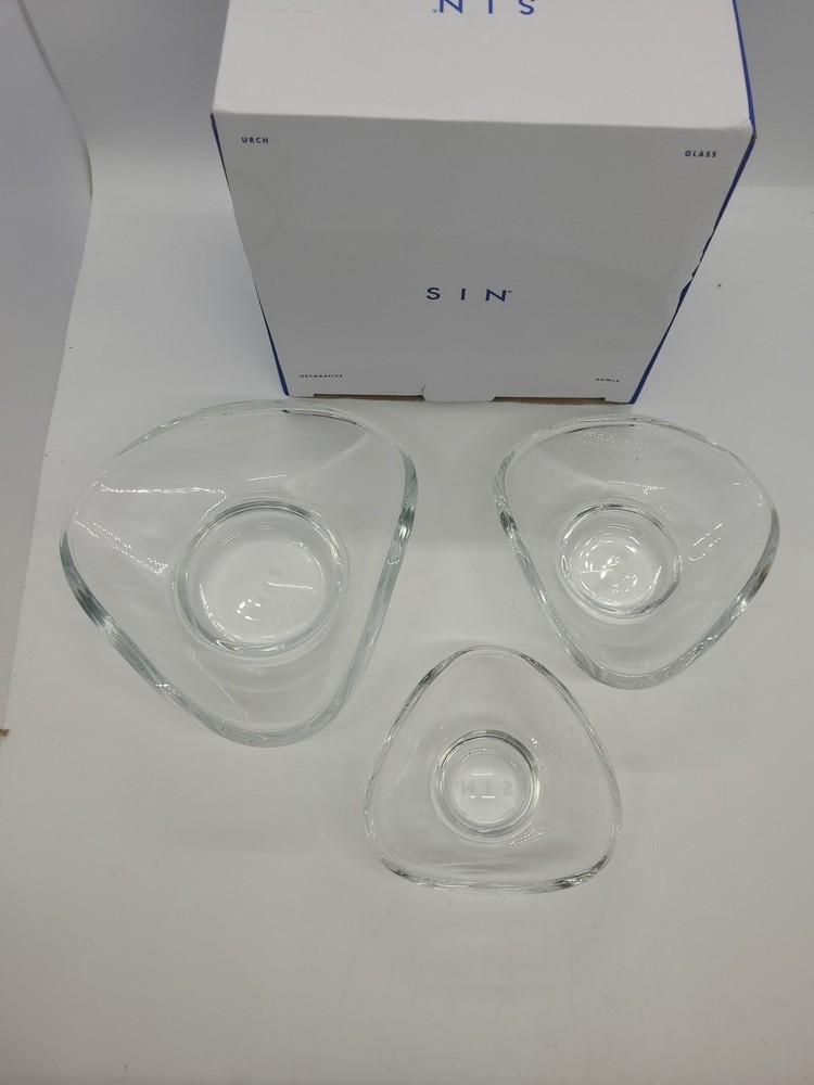 SIN Urch Decorative Glass Bowls Set of 3 Clear Snack Nut Bowls NEW Open Box