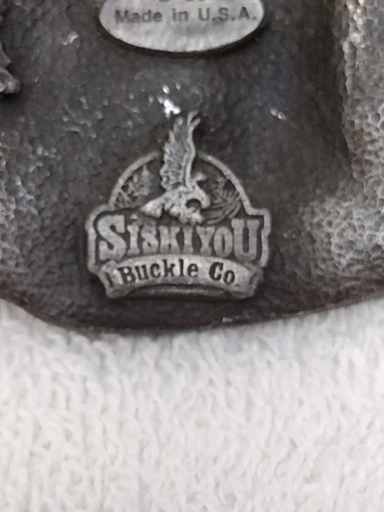 This vintage SISKIYOU Buckle Co., Inc. belt buckle is a unique addition to any collection. Made of pewter and featuring a telephone lineman theme, this belt buckle is a true gem for collectors. The buckle is accented with dimensions and fits a 1.5 inch belt. The buckle is perfect for men who appreciate vintage accessories and is a great way to add a touch of history to any outfit. Made in the United States, this belt buckle is a high-quality piece that is sure to impress.
