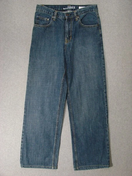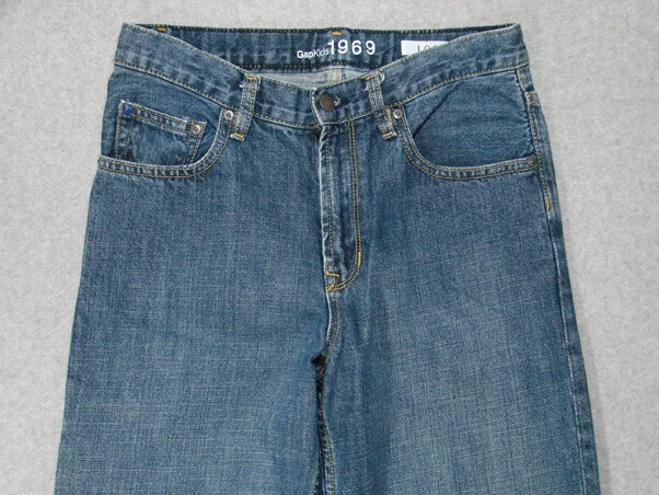 Current Measured Size: 28"x29" (See measurement table below) <--This--> <--Jean--> Original Mfg. Tag Size: YOUTH sz16R (See tag picture below) SEARCH 100719439 SJ07439 **GAP KIDS 1969** LOOSE FIT JEANS YOUTH sz16R (msr 28"x29") DARK BLUE REALLY GREAT CLASSIC JEANS Scroll Down For More Pictures (ad created with AdGen 16.5X. - posted by: GW) GENDER: YOUTH MAKER: GAP KIDS 1969 MODEL: UNKNOWN DETAILS: * STYLE#: UNKNOWN * COLOR: BLUES - DARK * STYLE: LOOSE FIT * FLY: YKK BRAND ZIPPER * FABRIC: 100% COTTON MEDIUM WEIGHT DENIM COMMENTS: * NICE JEANS! * GUARANTEED AUTHENTIC PRODUCT! CONDITION: VERY GOOD TAG SIZE: 16R MEASURED SIZE: 28"x29" MEASUREMENTS: 14.00" (35.6cm) Across Waist x 2 = (28.0" Waist) = (71.1cm Waist) 29.00" (73.7cm) Inseam 10.50" (26.7cm) Rise 8.50" (21.6cm) Leg Opening 11.00" (27.9cm) Across Thigh 18.00" (45.7cm) Across Hips x 2 = (36.0" Hips) = (91.4cm Hips) EVERY ITEM CAREFULLY HAND MEASURED ! MEASUREMENTS DOUBLE CHECKED BEFORE SHIPPING! TAG LISTED SIZES & ACTUAL MEASUREMENTS WILL DIFFER! COMPARE OUR MEASUREMENTS WITH YOUR ITEM WHICH IS SIMILAR. DON'T LET THESE GREAT JEANS GET BY YOU! **** IMPORTANT **** USED JEANS ARE SUBJECT TO POSSIBLE WEAR AND DETERIORATION OVER TIME AND MAY NOT STAND UP TO ACTUAL WEAR OR USE. WE CAREFULLY INSPECT EACH ITEM AND NOTE ANY VISIBLE FLAWS, BUT DAMAGE CAN OCCUR AFTER YOU BEGIN USING THE ITEM. ITEM IS SOLD AS IS ONLY. VintageUSAJeans is a U.S.A. based online seller of pre-worn and vintage jeans. Promotional Payment Information Payment Terms FULL PAYMENT REQUIRED WITHIN 5 DAYS OF PURCHASE! Payment Options Please see this site's payments section for available options. Shipping Information Shipping Rates U.S.A. CANADA OTHERS 1 Pair $8.50 $21.00 $28.00 2 Pairs $12.50 $40.00 $56.00 3 Pairs $14.50 $51.00 $80.00 4 Pairs $16.50 $60.00 $92.00 <--BEST DEAL!!! These are our standard rates. Rates will be higher for large sizes or extra heavy jeans. Listed U.S.A. shipping rates are generally for Priority U.S.Mail, but may be shipped by other methods at our discretion. All items will be shipped with a tracking # or delivery confirmation # to comply with buyer/seller protection requirements. International Buyers *Import duties, taxes and charges are not included in the item price or shipping charges. These charges are the buyer's responsibility. *Please check with your country's customs office to determine what these additional costs will be prior to bidding/buying. *These charges are normally collected by the delivering freight (shipping) company or when you pick the item up. DO NOT confuse them for additional shipping charges. *We do not declare merchandise values below actual selling price. We also do not mark items as "gifts". U.S. and International government regulations prohibit such behavior. *Some countries customs clearance can delay arrival of your shipment up to 60 days! BEFORE BIDDING ON OR BUYING OUR ITEMS YOU MUST AGREE TO THE FOLLOWING TERMS: Buyer agrees to pay for item within 5 days of purchase. No returns accepted without prior authorization from seller. Shipping charges will not be refunded or reimbursed on returned items. ***** All items sold "AS IS" only ******