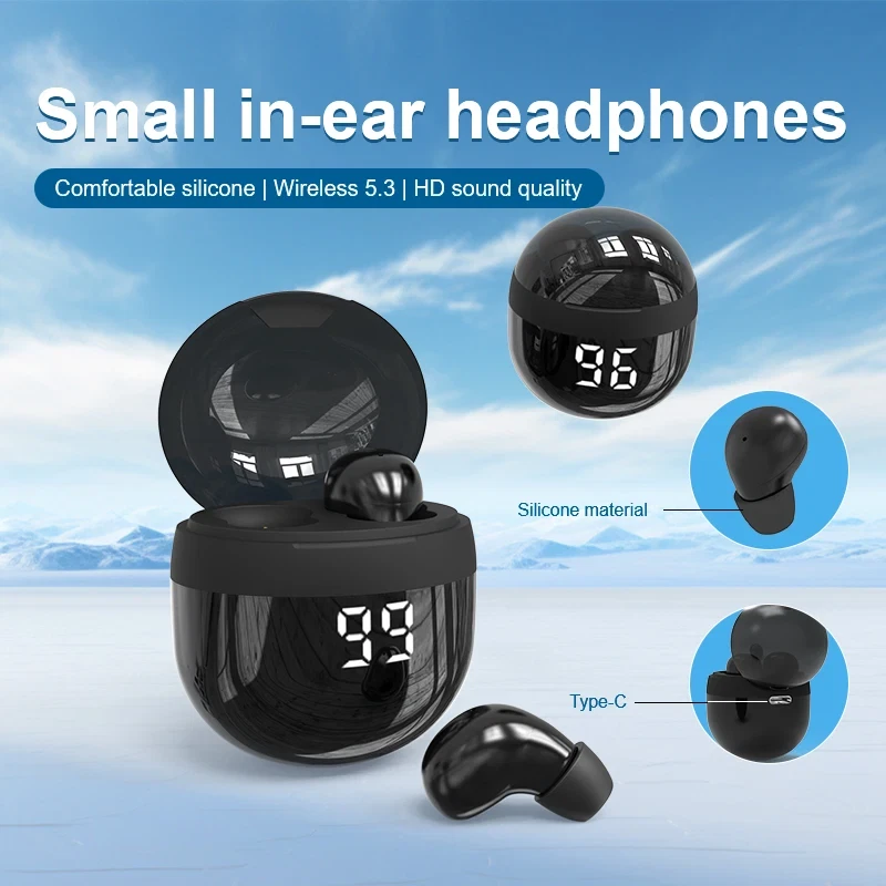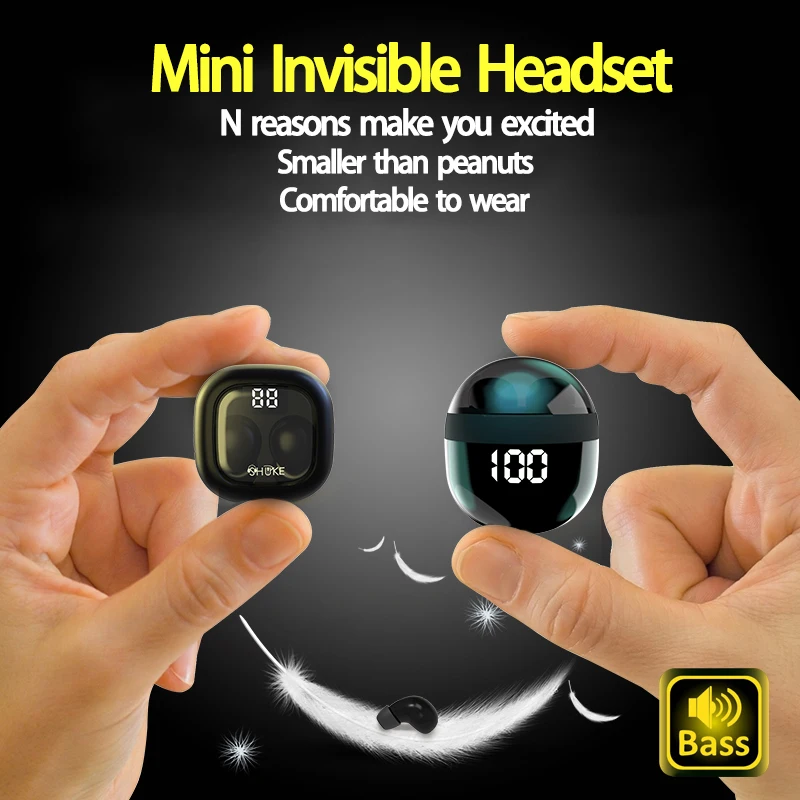 There are more than N reasons that make you excited! Parameters: Bluetooth version: 5.3 Available system: iOS/Android Battery capacity(case): 300mAh Standby Time: About 480h Charging port: Type-C Charging Voltage: DC 5V Headphone Charging Time: about 1h Bluetooth profiles: HFP/HSP/A2DP/AVRCP Low Power Reminder: Voice IPX7 Waterproof and Dustproof HD Bass Quality, Offers Stunning Sound FAQ: Q: What should I do if the earphones doesn't connect to my device? A: Please delete the connection record and reconnect it with the mobile phone. Q: What should I do if one earbud have no sound while the other one is normal? A: Please place the earphones back to the charging case, then open the case and reconnect it to the mobile phone. If it doesn't work, please reset the earphones and try again. Q: Why the connection is not stable and cut out intermittently? A: 1. Please make sure there are no objects between the earphones and your Bluetooth device, and make sure there is no radio or Wi-Fi interference nearby. 2. Reset your earbuds. Smallest earbuds mini wireless bluetooth 5.3 headset sport,sleeping,working and in class invisible comfortable to wear.Easy to connect,No burden in the ears creating a unique music experience for you, allowing you to fully enjoy the freedom of music! Upgrading the sound quality of your phone, let you feel the true charm of music. Combining high-quality sound effects with unique design, Bluetooth earphones bring you excellent enjoyment in both sound quality and appearance! There are more than N reasons that make you excited! Million hot sales Multiple discounts. Free shipping!