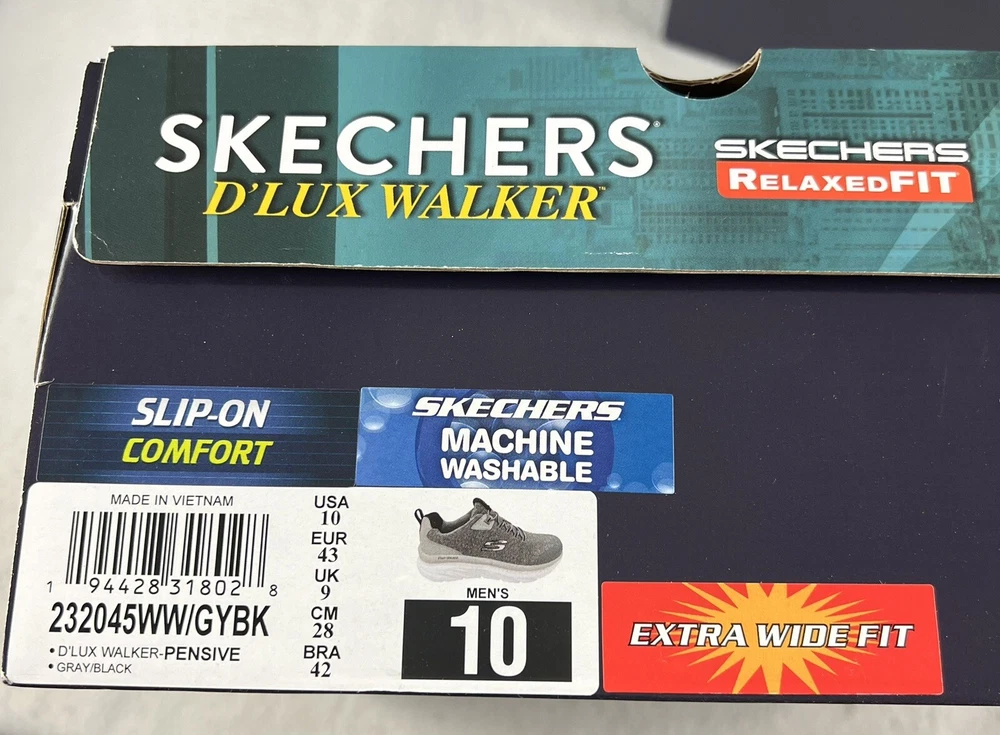 SKECHERS Men's D'Lux Walker Pensive Grey/Black Slip-On Sneakers X-WIDE Sz 10 NIB