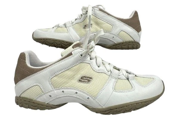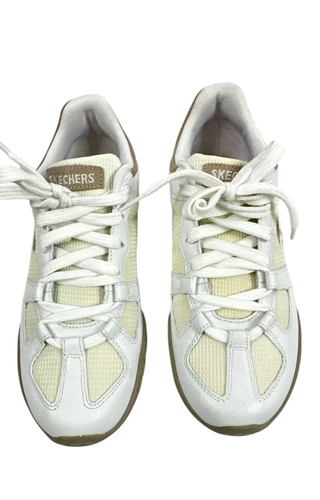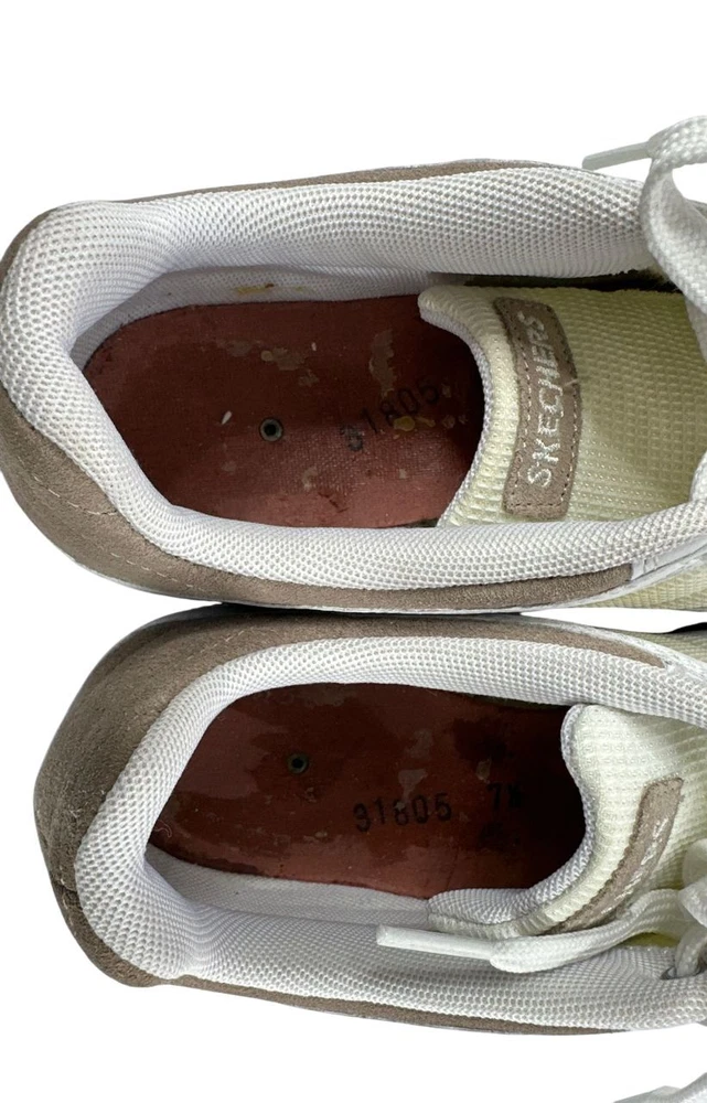Department: Women - US Size: 7.5 Brand: SKECHERS Model : Running Type : Athletic Color: White & Brown - Upper Material : See tag Condition: Pre-owned