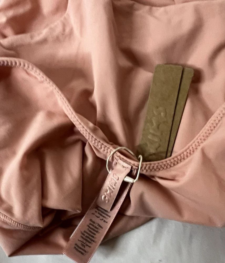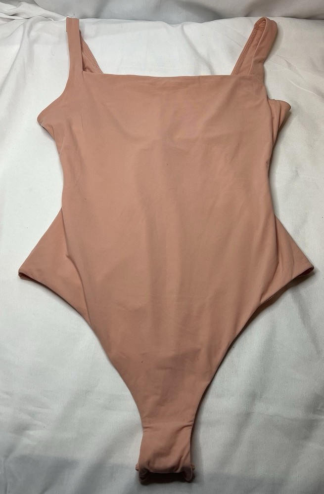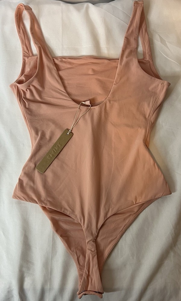 New with tags. Womens small A square neckline and low scoop back make this bodysuit a flattering base layer or everyday wardrobe item. Features a high cut leg opening and thong back that remains invisible under clothing. Fabric Double Layered, Square Neckline, High Cut Leg Opening, Thong Back Remains Invisible Under Clothing, Low Scoop Back, 100% Cotton Gusset, Snap Closure