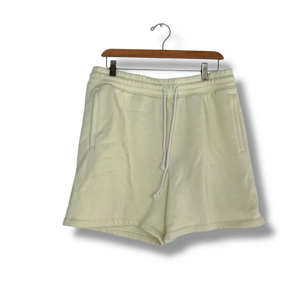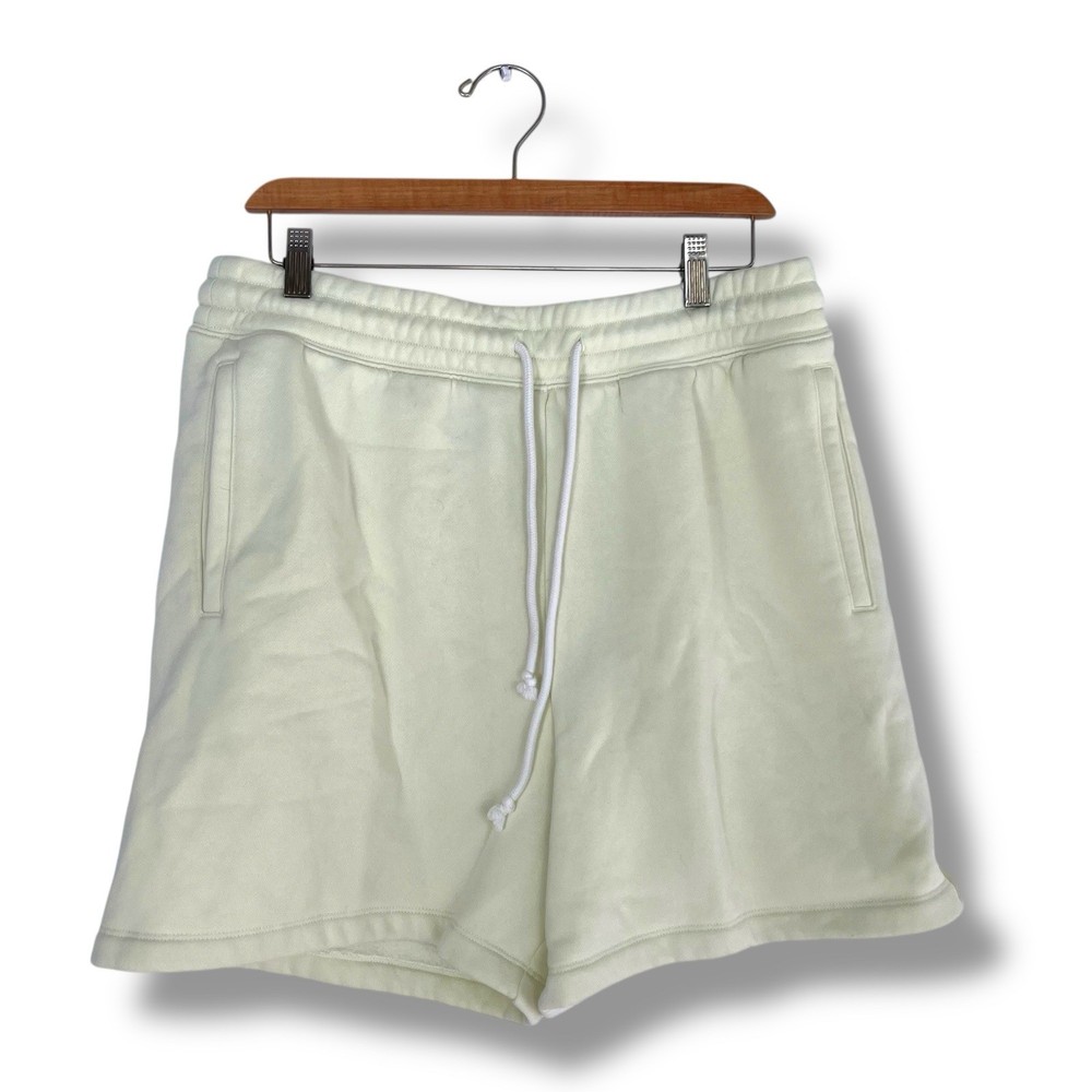 5 inch inseam Side seam pockets Waist 16 flat across unstretched Excellent condition Roomy and relaxed, these shorts made of a breathable cotton-blend feature an adjustable waist and a pair of handy pockets that make them a go-to favorite whether you're out and about or lounging at home. • 5" inseam; 27" leg opening; 14 1/4" front rise; 18" back rise (size Medium) • Elastic/drawstring waist • Side-seam pockets • 68% cotton, 32% polyester • Machine wash, tumble dry