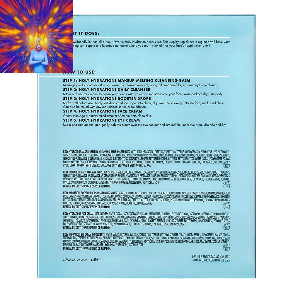 Store New Arrivals Add to Favorite View Feedback Contact SKIN Hydrated Ever after Skincare Mini Kit, Cleanser, Makeup Remover, Moisturiser & Eye Cream for Hydrating Skin, Airplane-Friendly Sizes Description Item model number 57150 Item dimensions L x W x H 1.81 x 5.31 x 6.54 inches Active Ingredients Hyaluronic Acid Product Dimensions 1.81 x 5.31 x 6.54 inches; 7.83 ounces Country of Origin China Age Range (Description) Adult Special Feature Travel Size Manufacturer Cosmetics A COMPLETE HYDRATION REGIMEN: This skincare kit has all of your favorite Holy Hydration necessities- a Holy Hydration. Daily Cleanser, Holy Hydration. Makeup Melting Cleansing Balm, Hydrating Booster Drops, Holy Hydration. Face Cream and Eye Cream. CLEANS and NOURISHES SKIN: This step-by-step skincare regimen will have your face feeling soft, supple and hydrated no matter where you are – think of it as your face’s happily ever after. INFUSED WITH HYALURONIC ACID: e.l.f. SKIN's Hoy Hydration. products are infused with Hyaluronic acid to help hydrate and plump the skin, Ceramides to help build up the skin's moisture barrier, and Peptides for refreshing complexion. TRAVEL-FRIENDLY SIZES: All of the products in the Hydrated Ever After Skincare Mini Kit are travel-friendly sizes so you can take it wherever you go. VEGAN & CRUELTY-FREE: 100% vegan, e.l.f. is double-certified cruelty-free by Leaping Bunny & PETA. This skincare kit has all of your favorite Holy Hydration necessities in convenient travel sizes. The Hydrated Ever After Skincare Minis include a Holy Hydration. Daily Cleanser, Holy Hydration. Makeup Melting Cleansing Balm, Hydrating Booster Drops, Holy Hydration. Face Cream and Eye Cream. ABOUT US We offer the best prices around on high quality products. Our E-store includes media such as books, movies, music and games while offering electronics, toys, sporting apparel, clothing, tools, general home, garden items and more. SHIPPING We are always working hard to ensure your package arrives as soon as possible. Please understand that some factors like weather, high postal traffic, and the performance of shipping companies are outside of our control. We offer free shipping to the lower 48 states and ship within 2 business days of payment, usually sooner. We do not accept P.O. Boxes. Please provide a physical address. For shipping outside of the continental USA, we only use eBay's Global Shipping Program.The item is shipped to KY and then sent to the rest of the world. International customers are responsible for all duties and taxes. Continue to check out in order to calculate costs for shipping the item to your country. Messages regarding eBay's Global Shipping Program MUST be directed at eBay EXCLUSIVELY. RETURNS We offer a 30-Day Return Policy on items which you are not completely satisfied with. You have the option for a full-refund or an exchange of the item. No returns are available on items shipped outside of the USA. PAYMENT We accept PayPal. CONTACT US This page content is yet to come Please ad us to your favorite seller and visit again later Thank You CUSTOMER SATISFACTION We try our very best to make sure every customer is completely satisfied. If there's a problem, message us! We're happy to help. WE ACCEPT